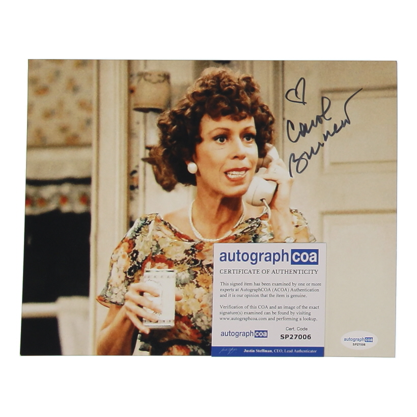 Photo measures 8" x 10" in size and has been hand-signed by Carol Burnett.