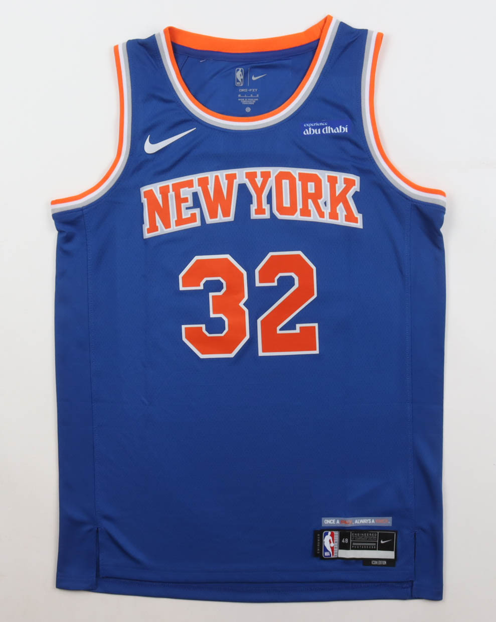 Nike authentic jersey with everything pressed on, size 48. Hand-signed by Karl-Anthony Towns (New York Knicks).