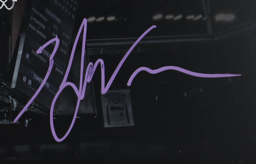 Photo measures approximately 16" x 20" in size and has been hand-signed by Zach LaVine (Sacramento Kings). Please note, the signature has been smudged.