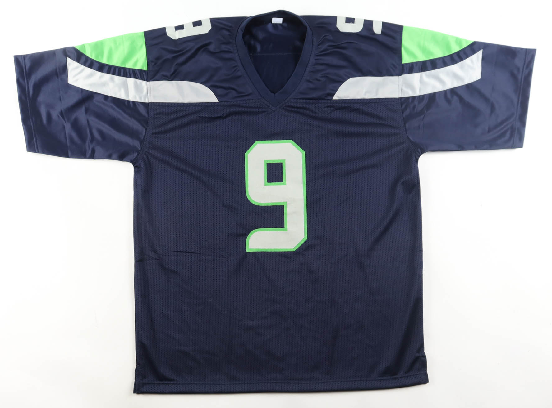 Custom jersey with everything sewn on, size XL. Hand-signed by Kenneth Walker III (Seattle Seahawks). Please note, there is a stray pen mark below the signature.