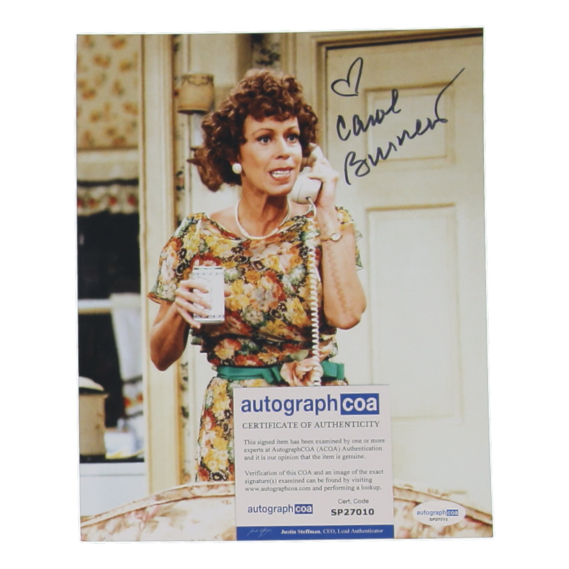 Photo measures 8" x 10" in size and has been hand-signed by Carol Burnett.