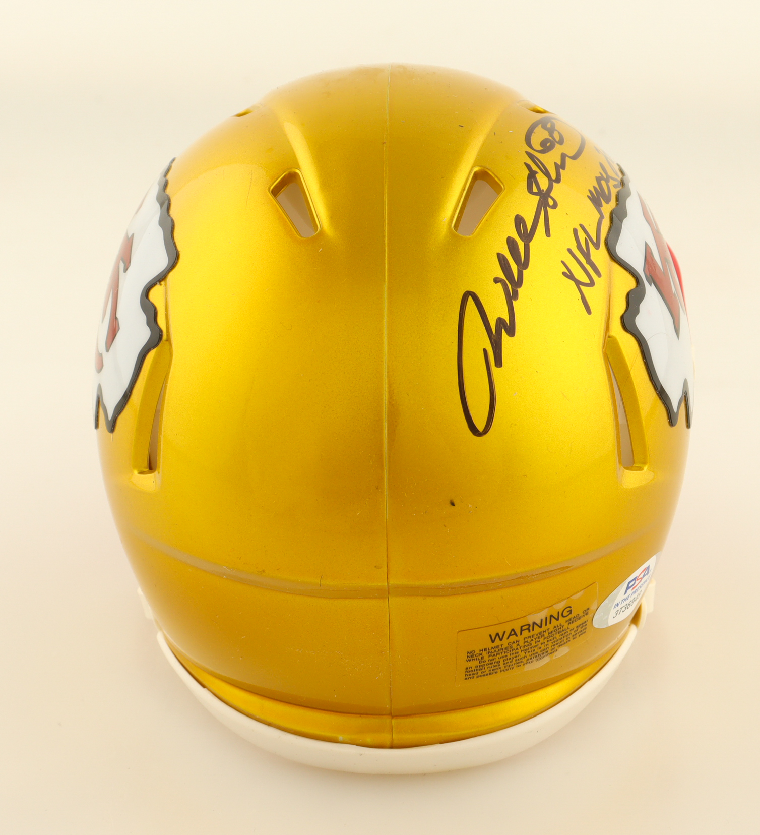 Riddell Kansas City Chiefs Flash Alternate Speed mini helmet has been hand-signed and inscribed by Will Shields (HOF).