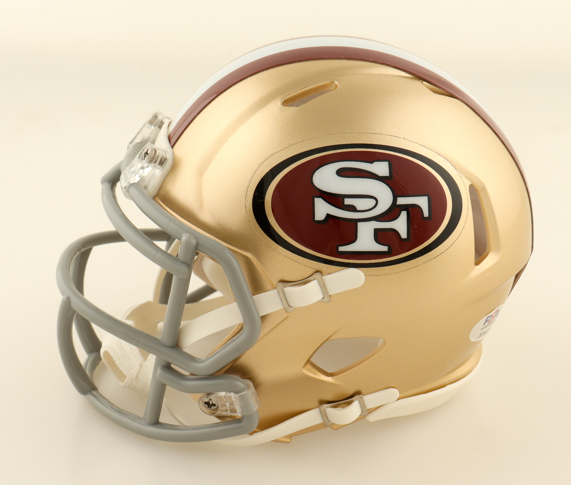 Riddell San Francisco 49ers speed mini helmet. Hand-signed by Bill Romanowski.