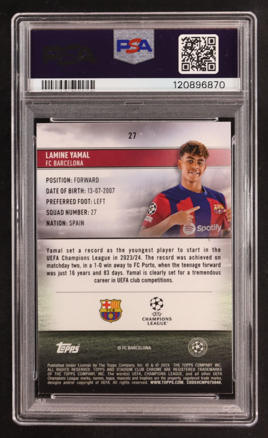 Lamine Yamal 2023-24 Stadium Club Chrome UEFA Champions League #27 RC (PSA 10)