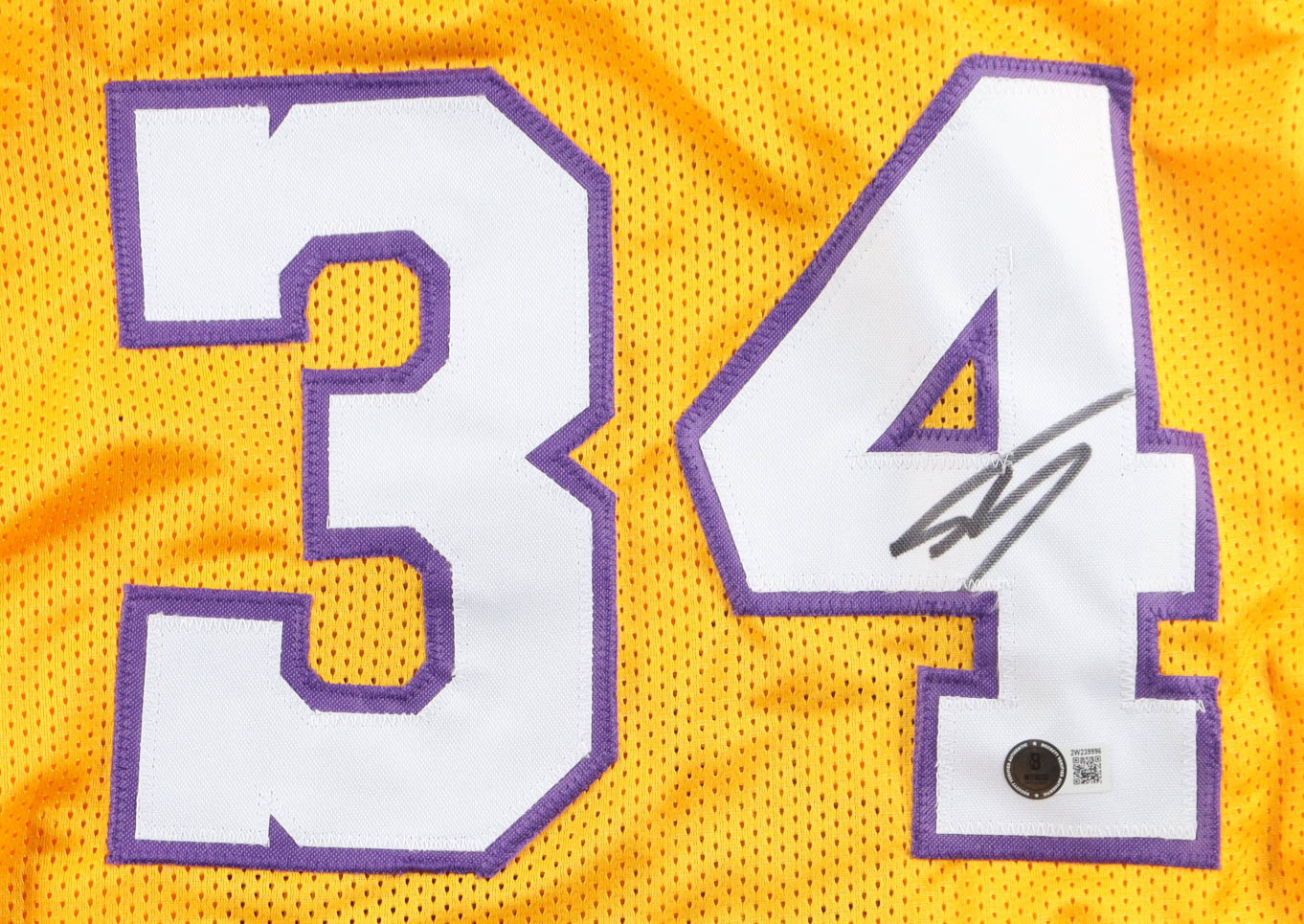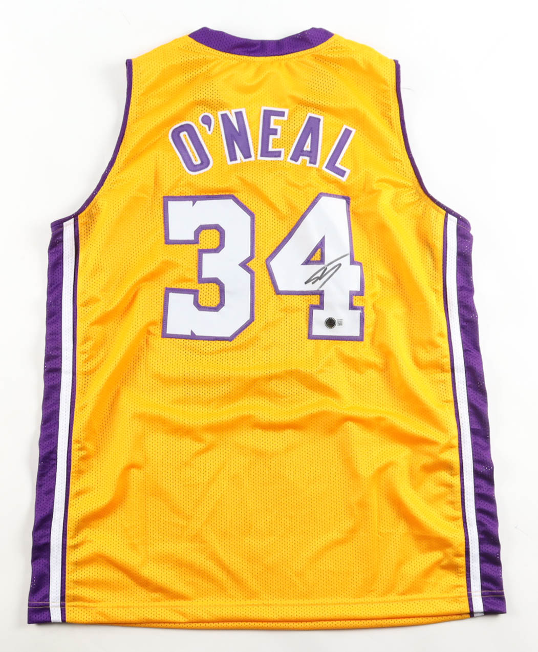 Custom jersey with everything sewn on, size XL. Hand-signed by Shaquille O'Neal (Los Angeles Lakers, HOF).