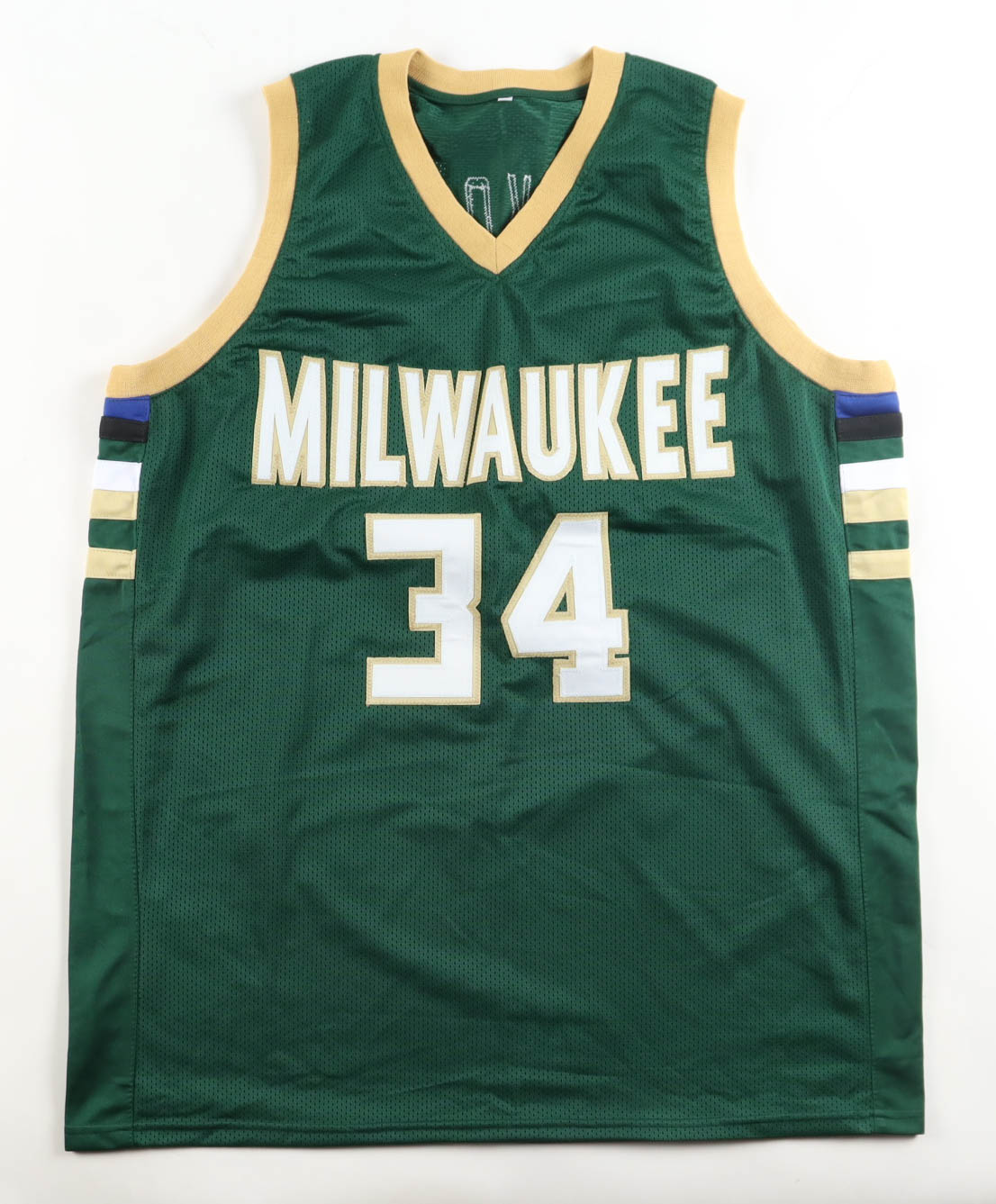 Custom jersey. Everything is sewn on, size XL. Hand-signed by Giannis Antetokounmpo.