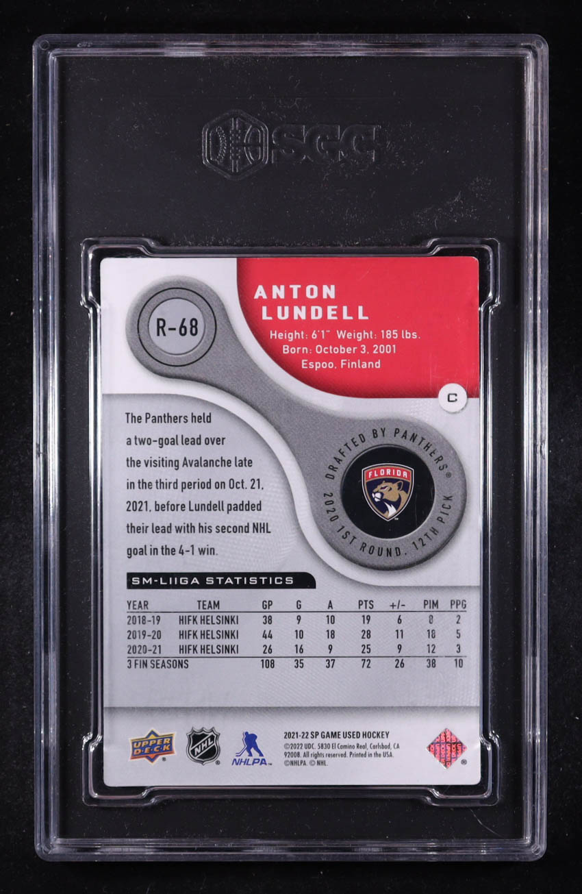 Anton Lundell 2021-22 Upper Deck SP Game Used '05-06 Retro Rookies #R-68 #190/999 (SGC 9.5)