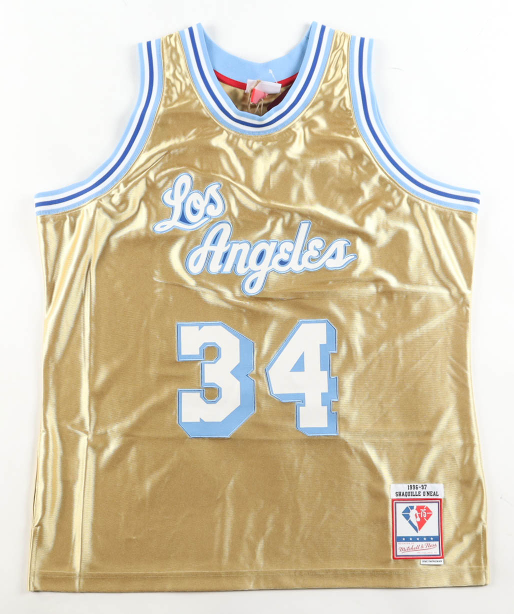 Mitchell & Ness authentic jersey with everything sewn on, size XL. Hand-signed by Shaquille O'Neal (Los Angeles Lakers, HOF).
