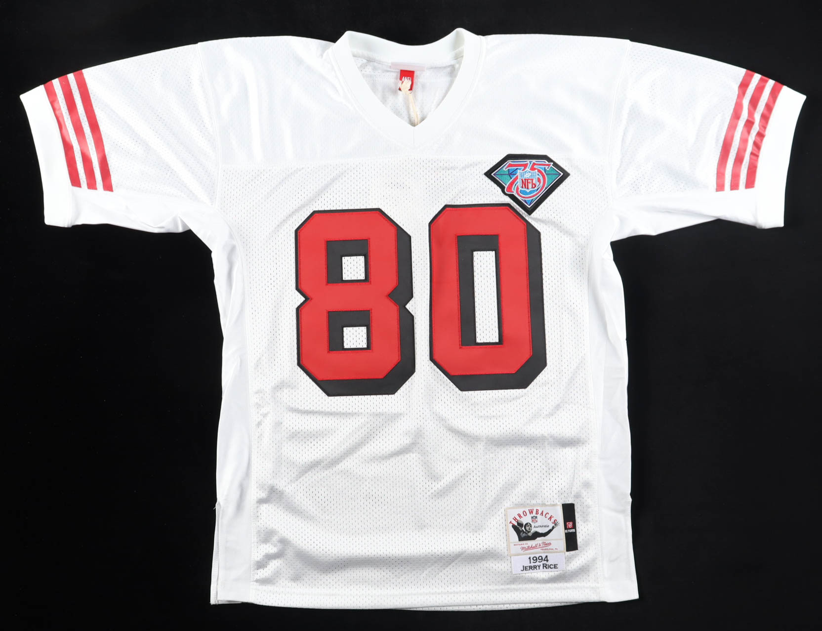 Mitchell & Ness Authentic jersey with everything sewn on, size 44 (L). Hand-signed and inscribed by Jerry Rice (San Francisco 49ers, HOF). Please note, glue is visible on the jersey numbers. See photos regarding the condition of the item.