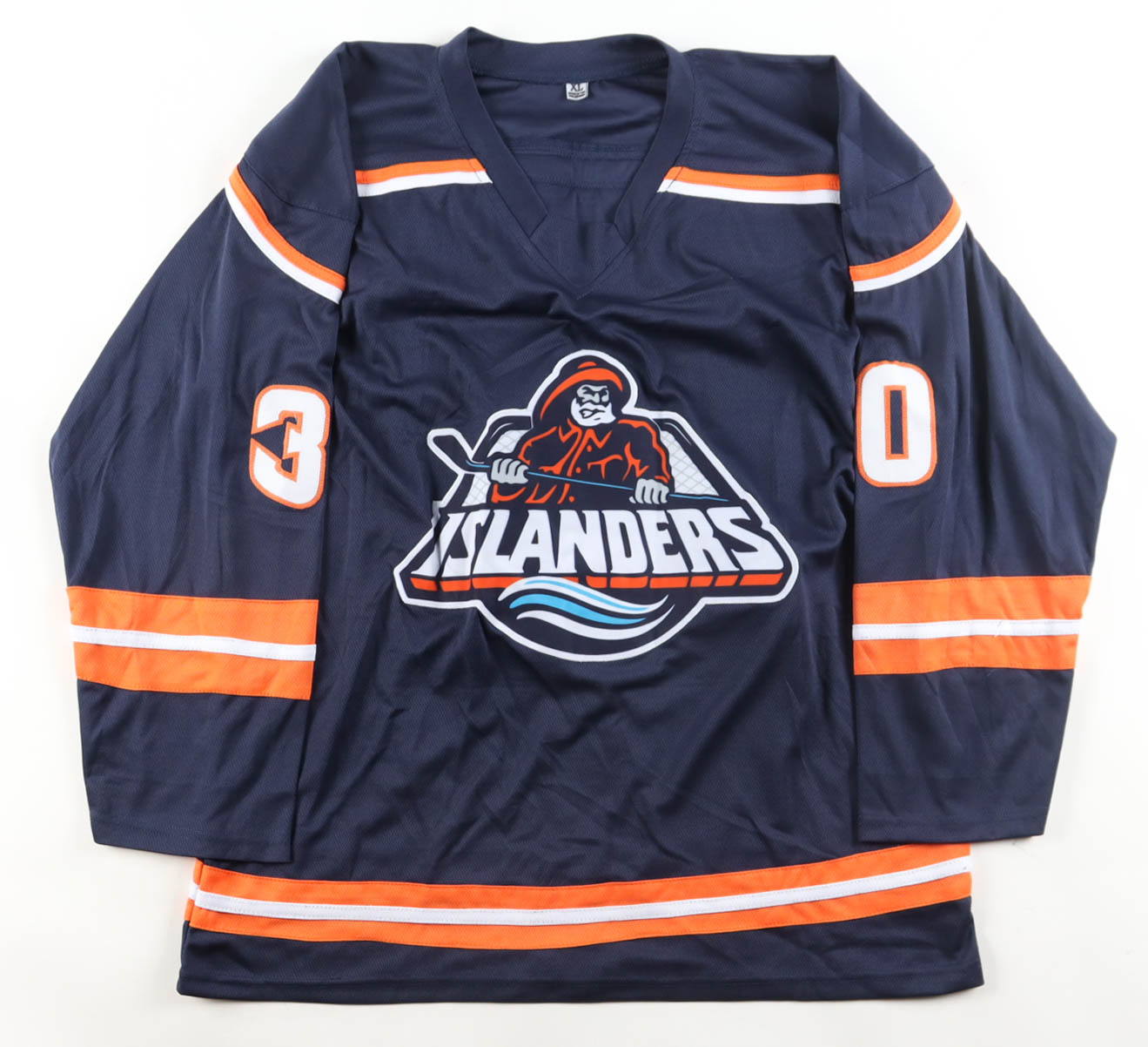 Custom jersey with everything sewn on, size XL. Hand-signed by Ilya Sorokin (New York Islanders).