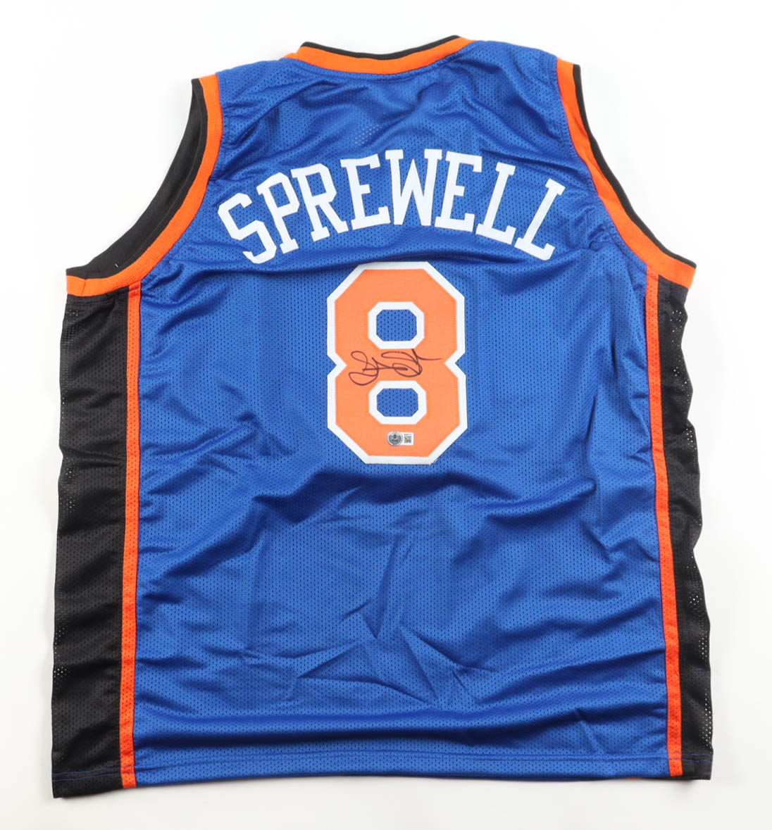 Custom jersey with everything sewn on, size XL. Hand-signed by Latrell Sprewell (New York Knicks).