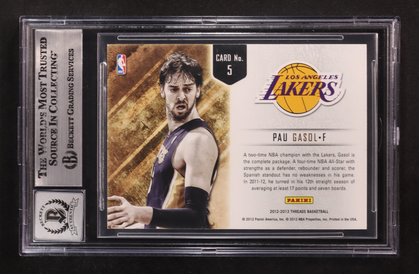 Pau Gasol Signed 2012-13 Panini Threads Inside Presence #5 (BGS | Autograph Graded BGS 10)