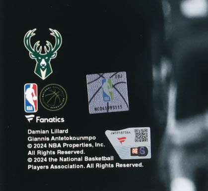 Photo measures 16" x 20" in size and has been hand-signed by Giannis Antetokounmpo and Damian Lillard (Milwaukee Bucks).