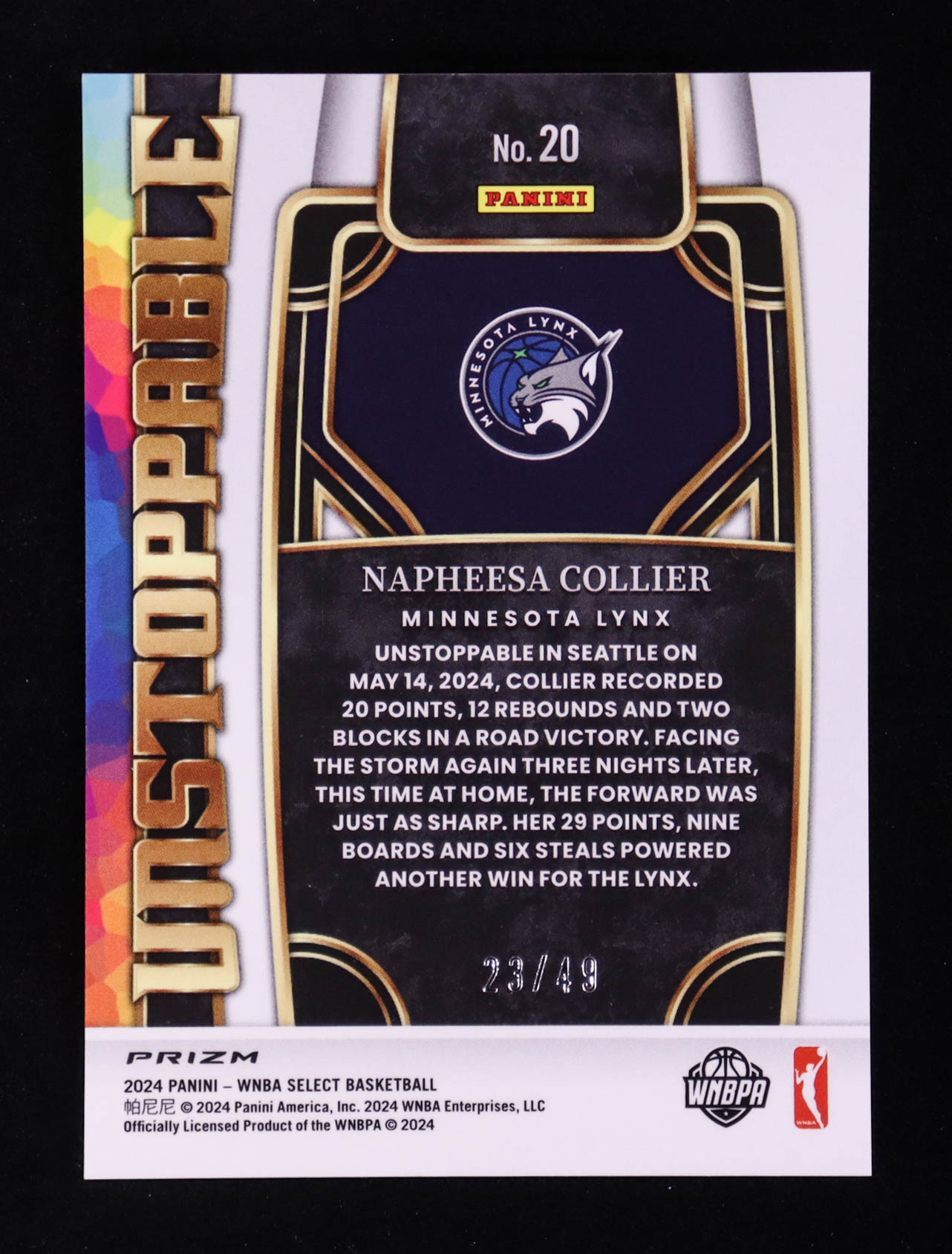 Napheesa Collier 2024 Select WNBA Unstoppable Blue Prizms #20 #23/49