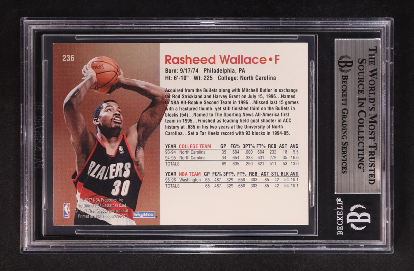 Rasheed Wallace Signed 1996-97 NBA Hoops #236 (BGS)
