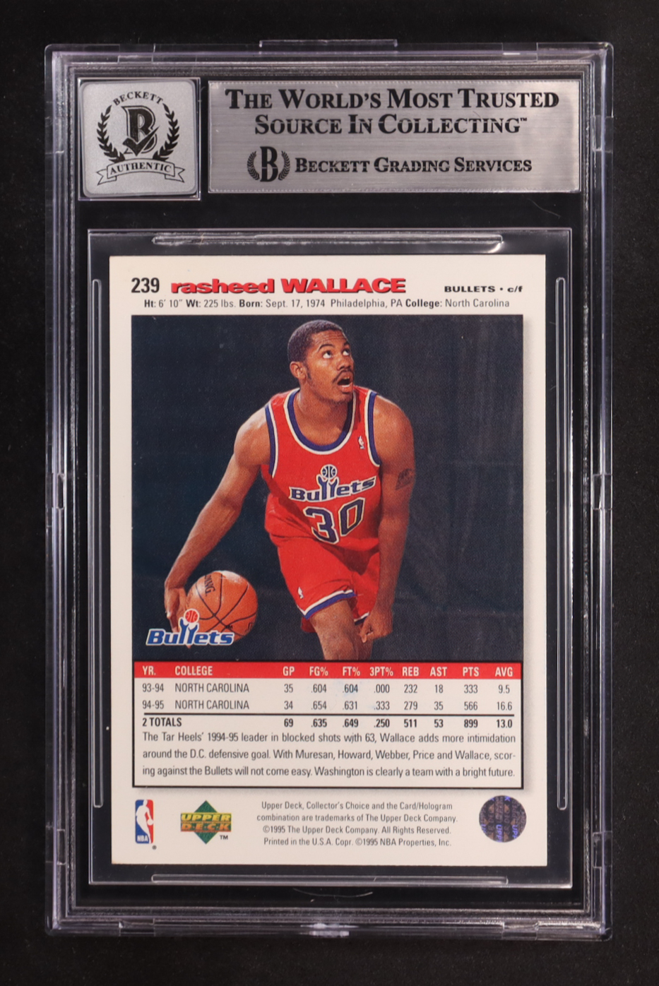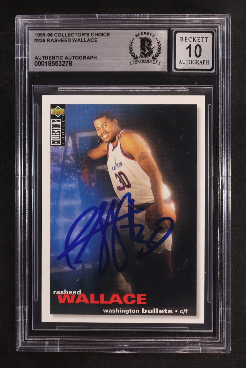 Rasheed Wallace Signed 1995-96 Collector's Choice #239 RC (BGS | Autograph Graded BGS 10)