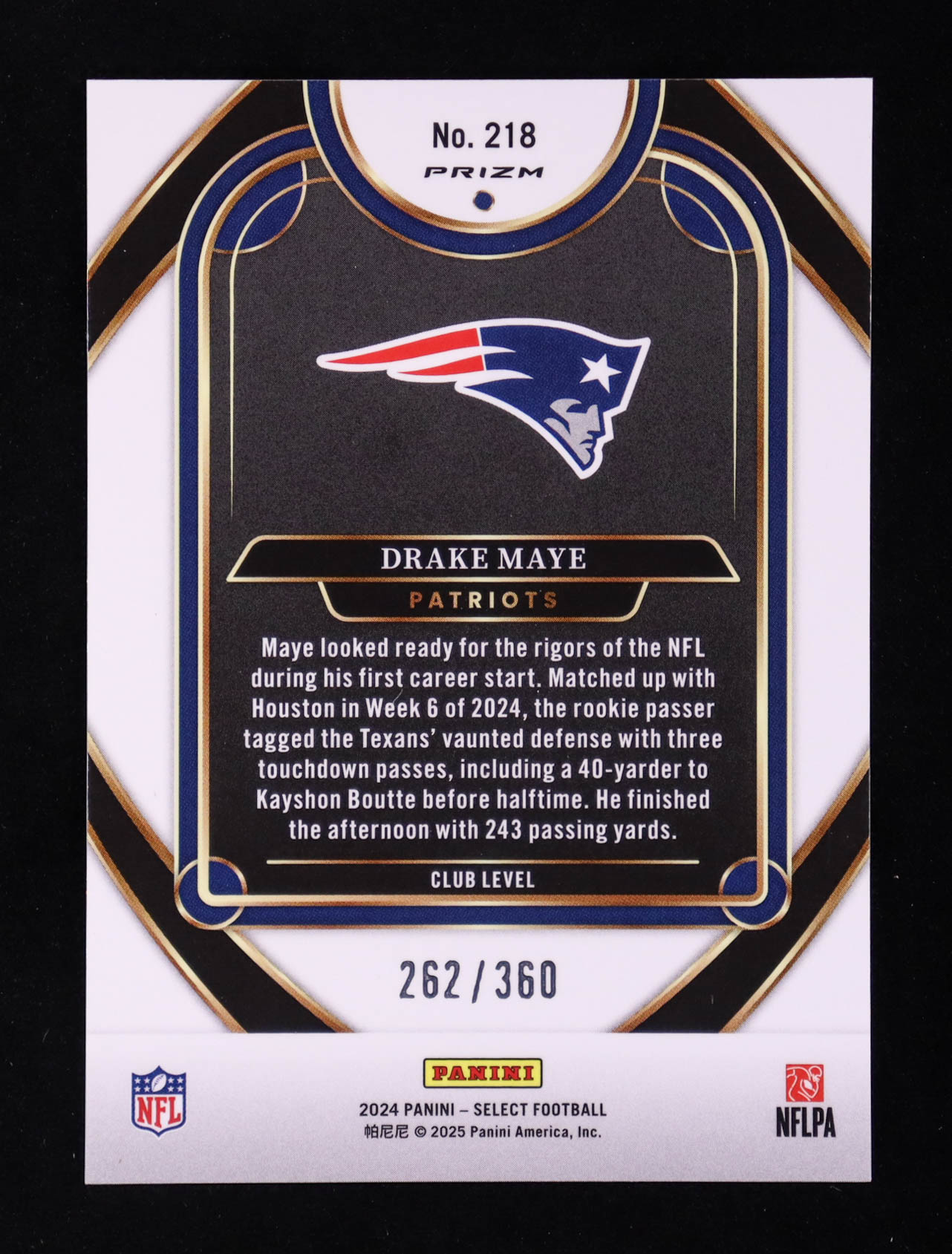 Drake Maye 2024 Select Prizm Purple Shock #218 RC #262/360