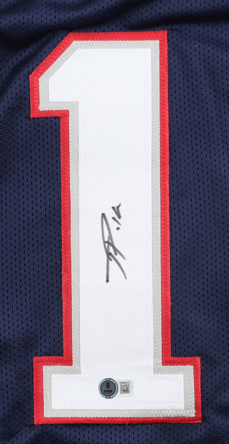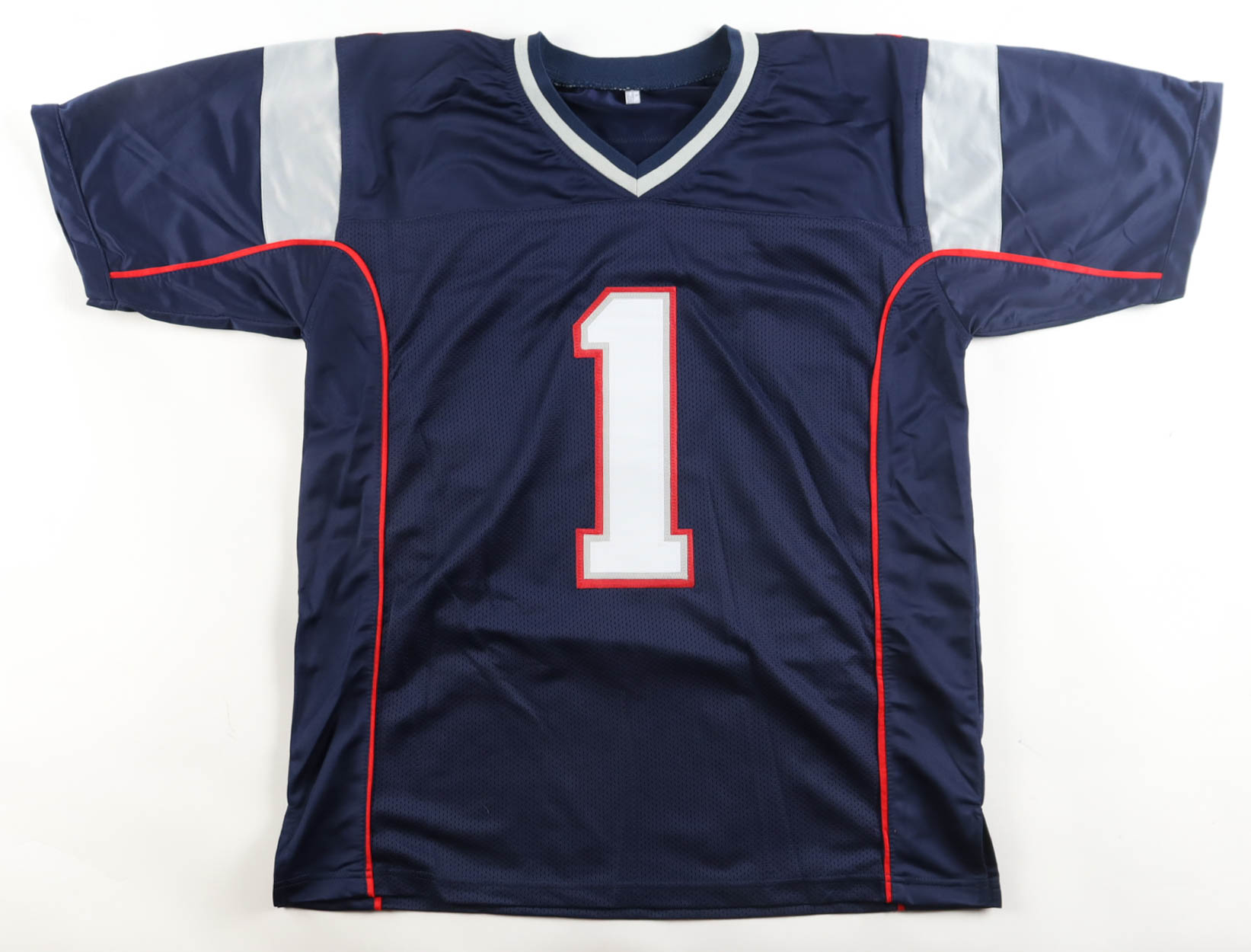 Custom jersey with everything sewn on, size XL. Hand-signed by Ja'Lynn Polk (New England Patriots).
