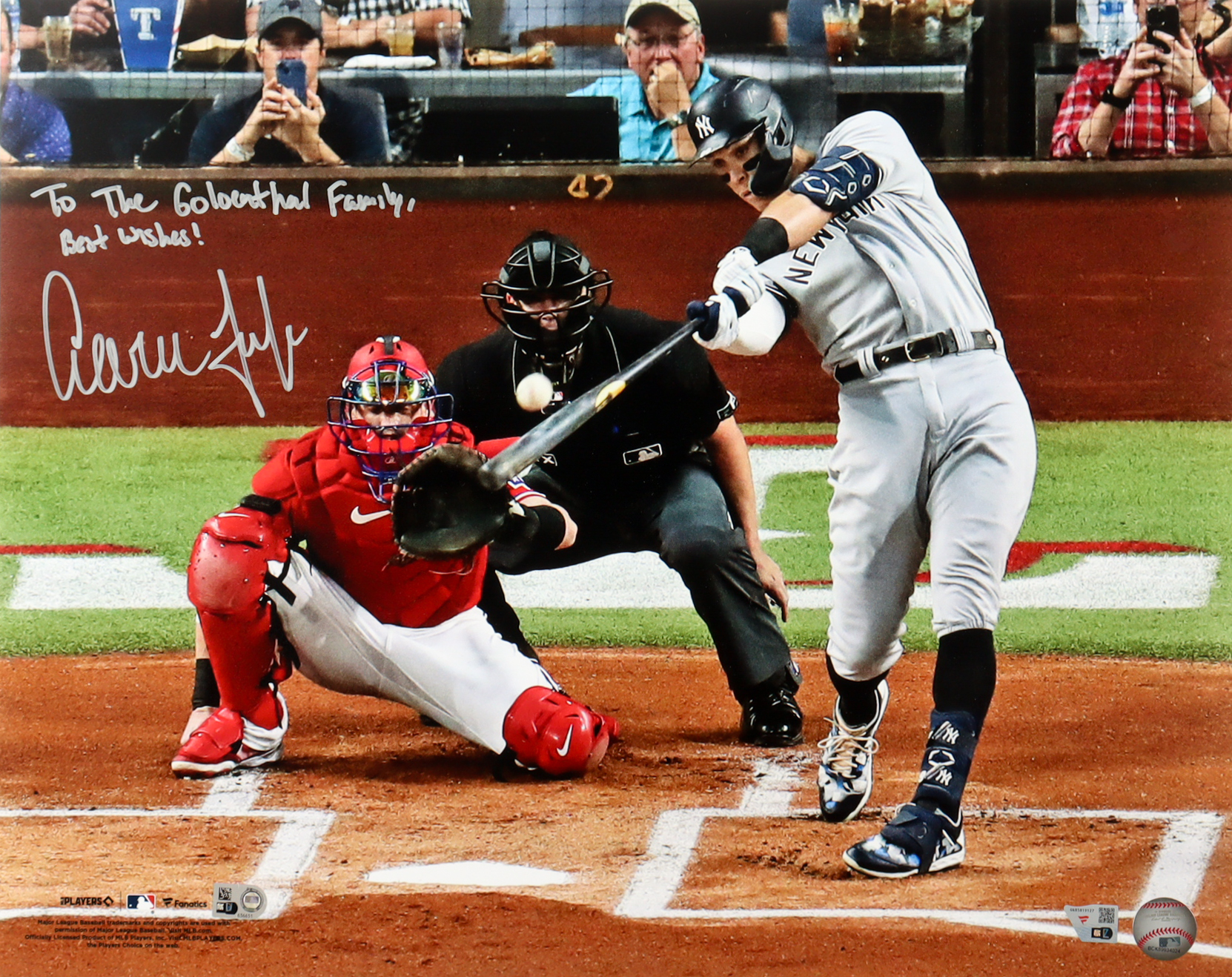 The autograph includes an official MLB Authentication hologram as well as a Fanatics hologram for authenticity purposes.