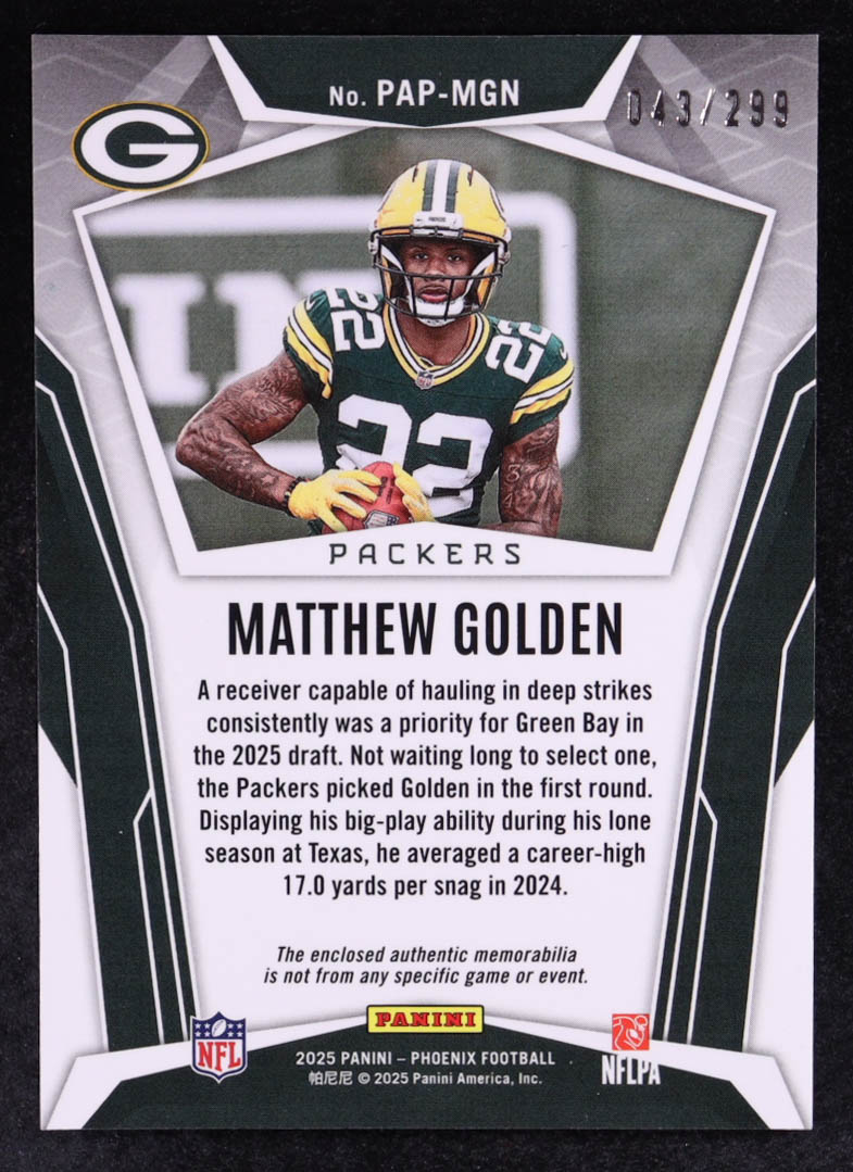 Matthew Golden 2025 Panini Phoenix Pandora Patches #7 #043/299 RC