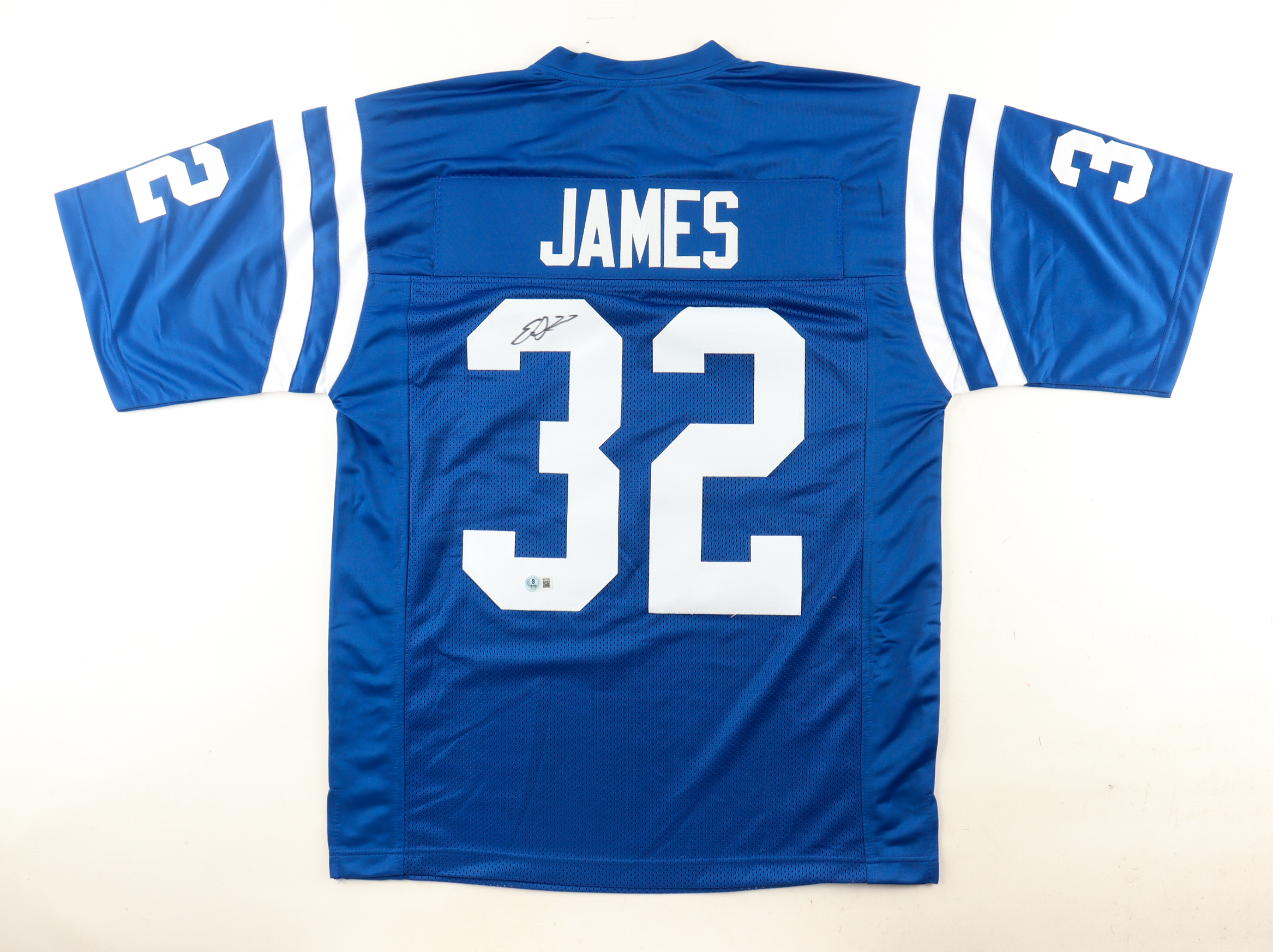 Custom jersey with everything sewn on, size XL. Hand-signed by Edgerrin James.