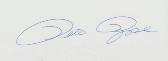 Custom frame measures 16.5" x 21 and features a Replica document dated August 23, 1989 and has been hand-signed by Pete Rose (D. 2024, Cincinnati Reds). Includes notary signature and seal dated September 18, 2011.