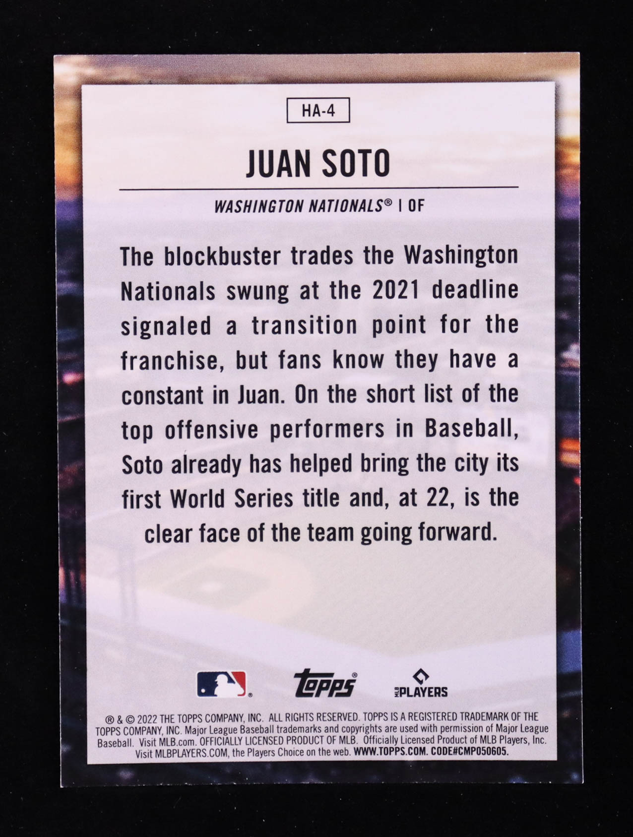 Juan Soto 2022 Topps Home Field Advantage #HA4