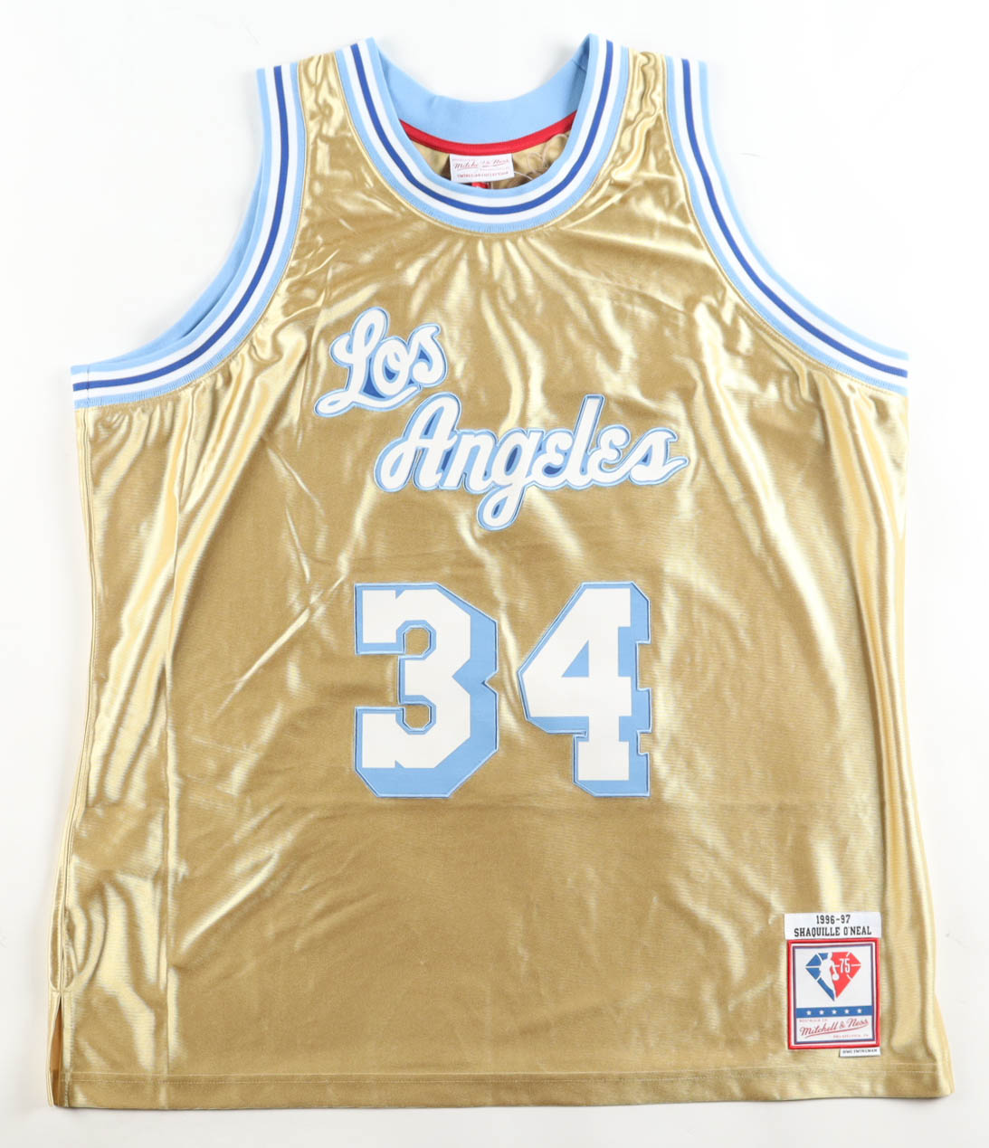 Mitchell & Ness authentic jersey with everything sewn on, size XL. Hand-signed by Shaquille O'Neal (Los Angeles Lakers, HOF).