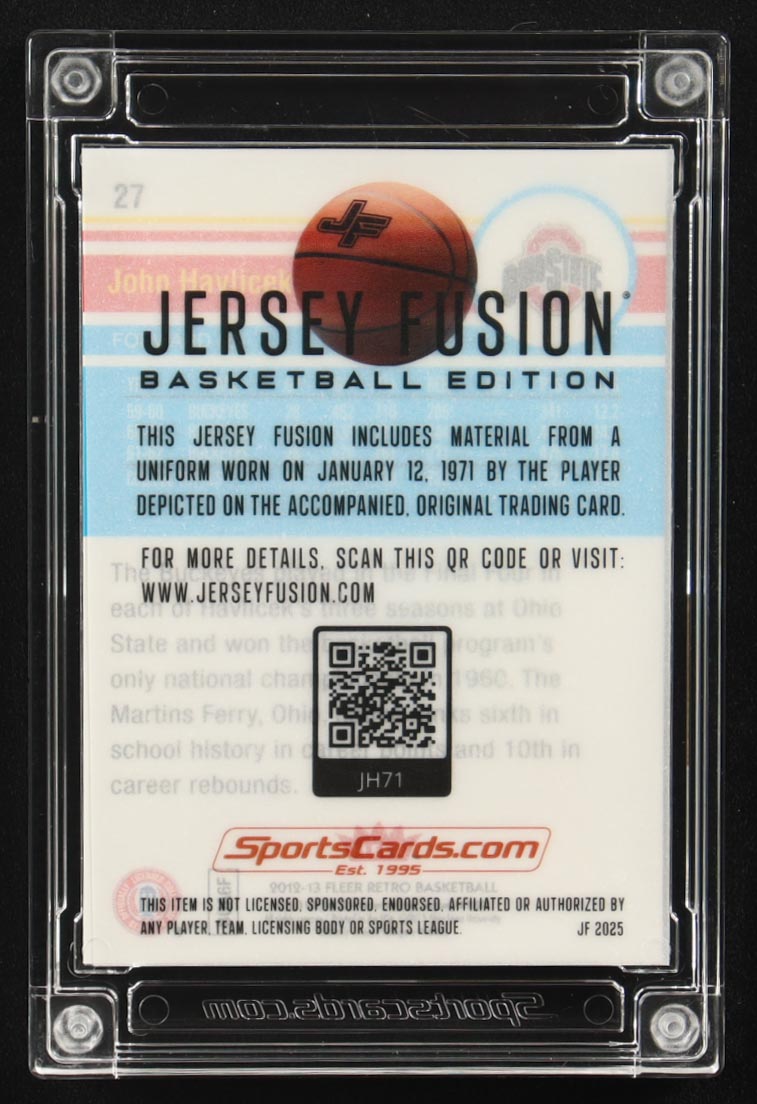 John Havlicek 2025 Jersey Fusion Baseketball Edition Fleer Dual Game Used Swatch #JH71 #16/25