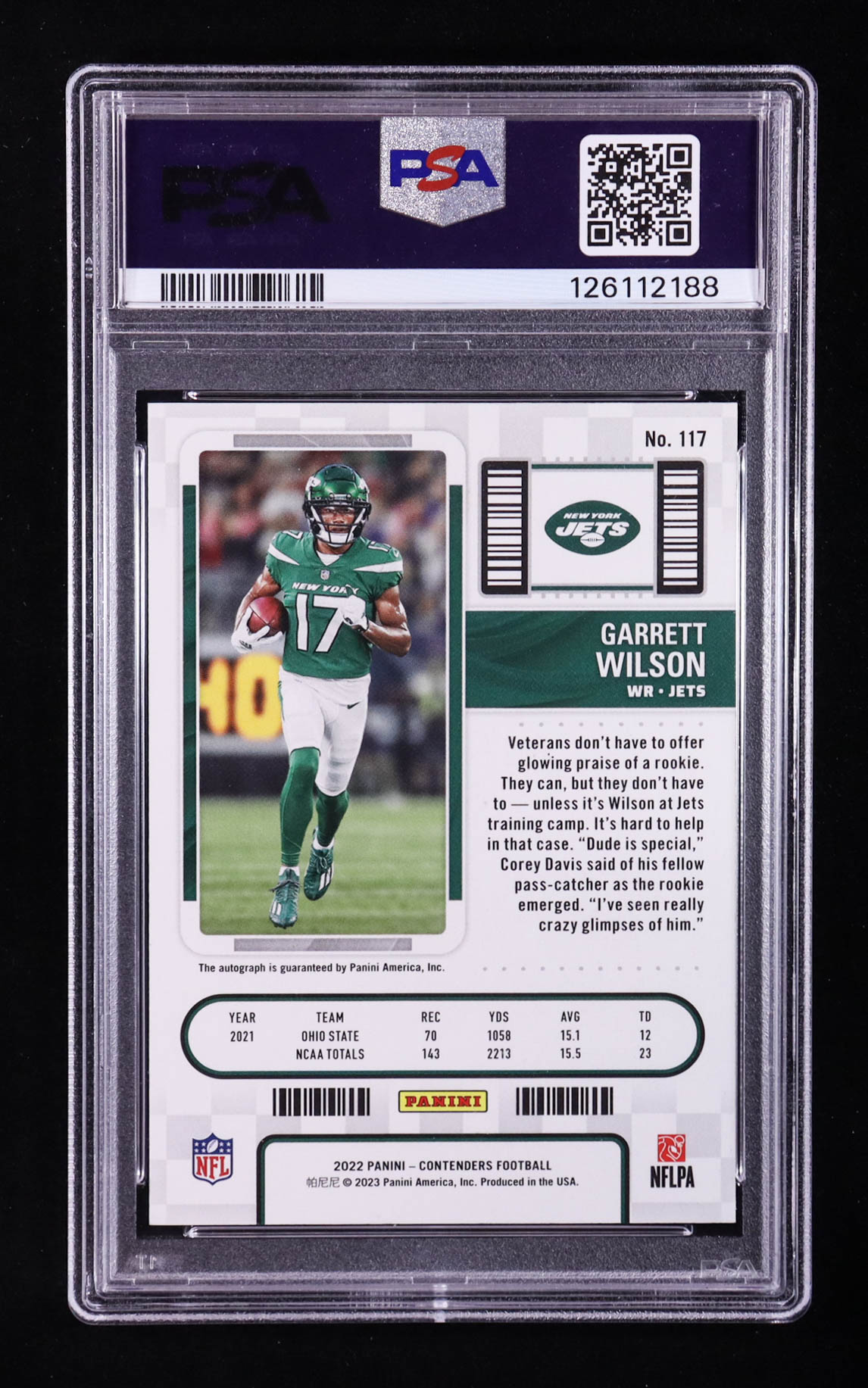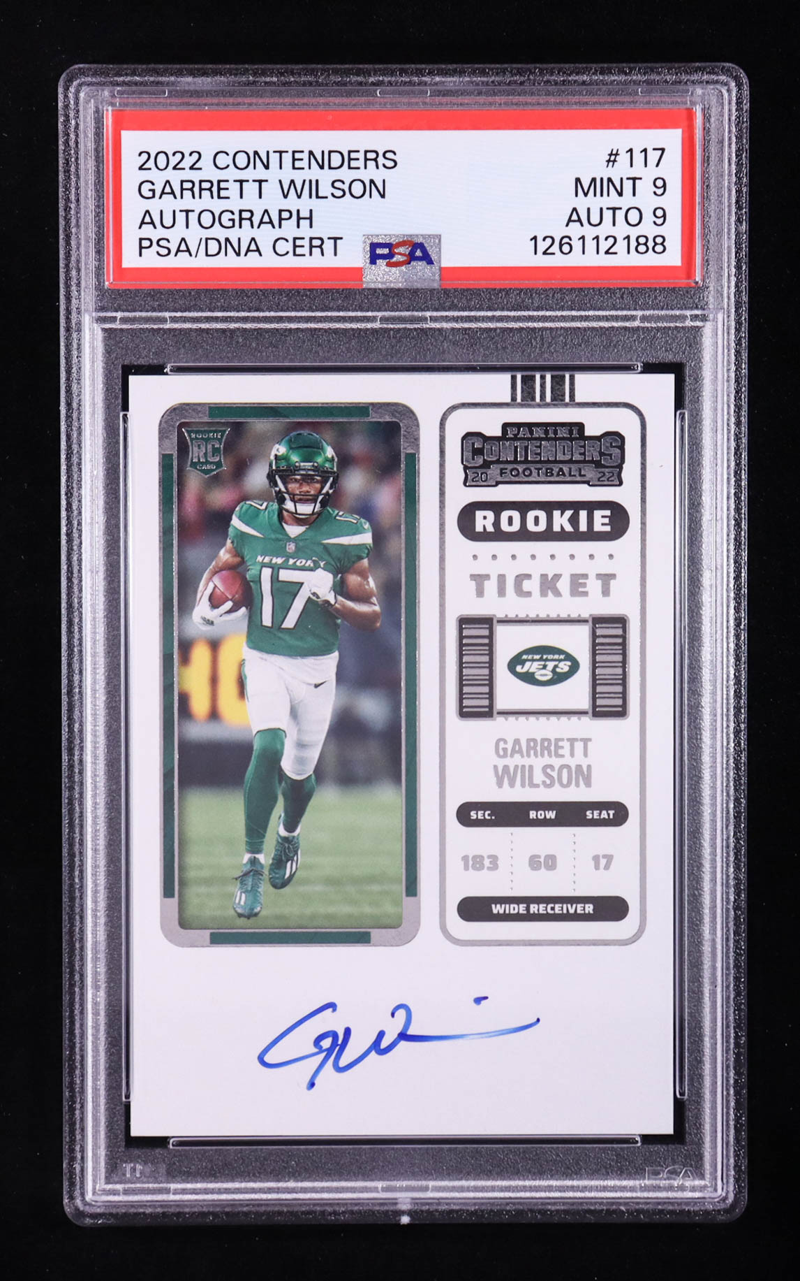 Garrett Wilson 2022 Panini Contenders #117A Autograph RC (PSA 9 | Auto 9)