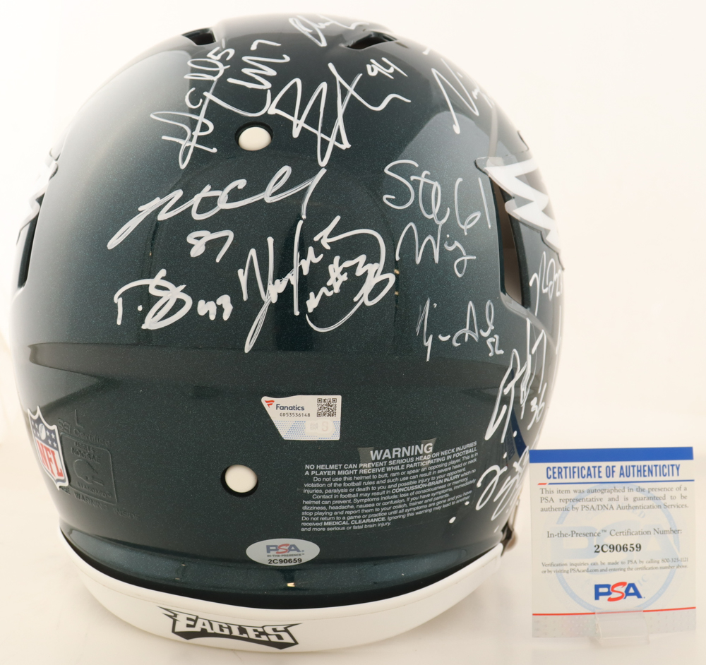 Eagles Super Bowl LII Champions Full-Size Authentic On-Field Speed Helmet Signed By (22) With Nick Foles, Jason Kelce, Lane Johnson, Doug Pederson (Fanatics & PSA)