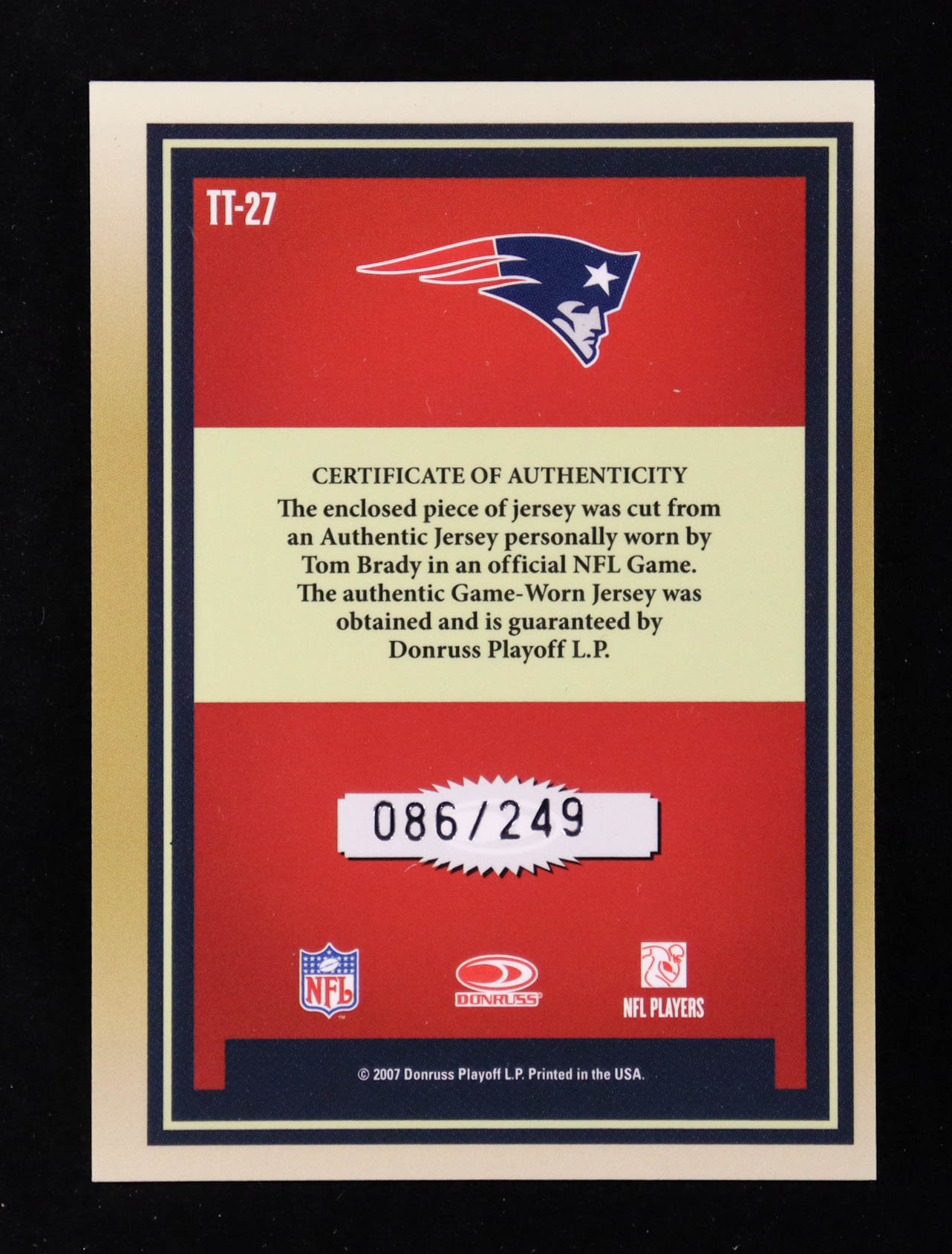 Tom Brady 2007 Donruss Elite Throwback Threads #27 #86/249
