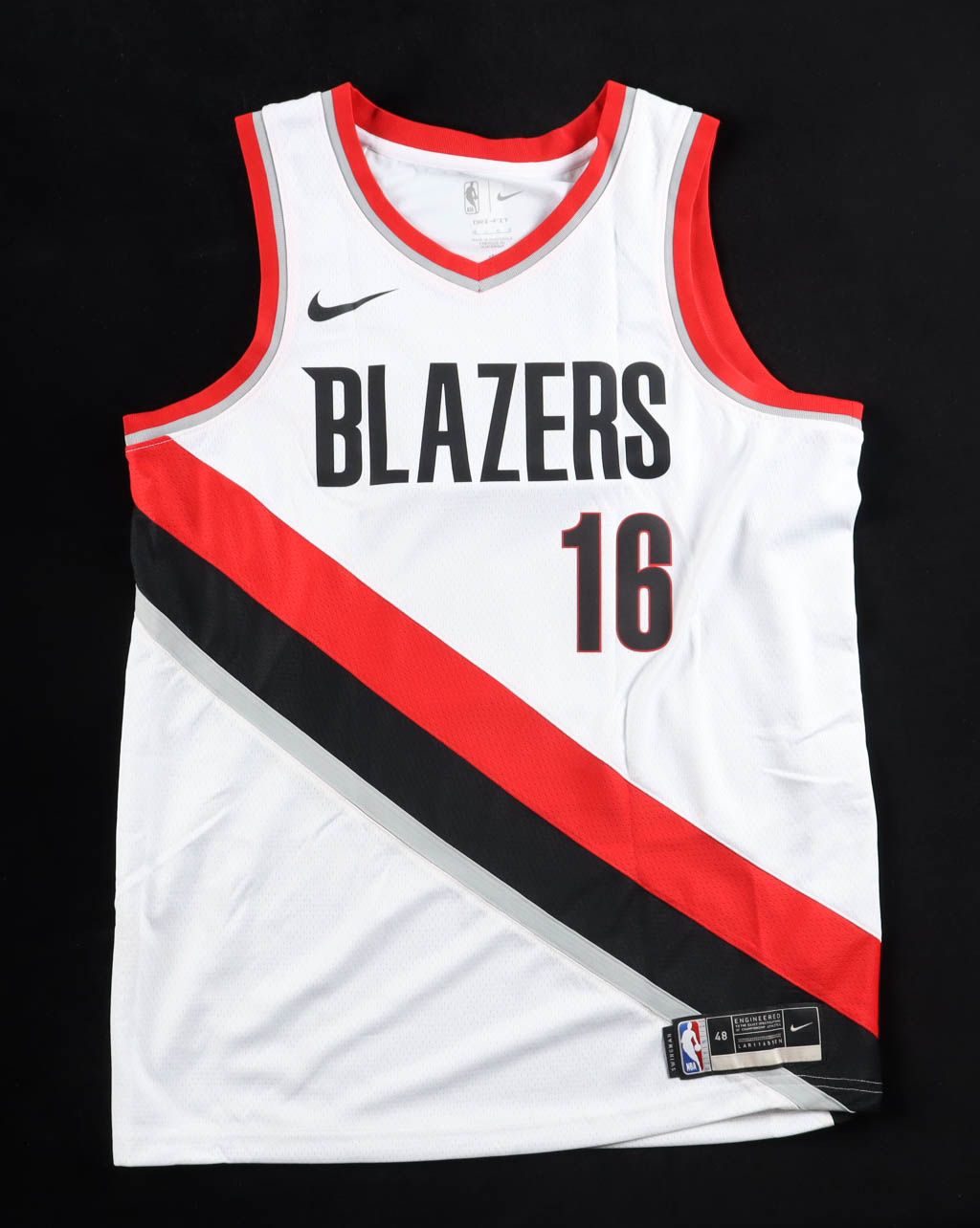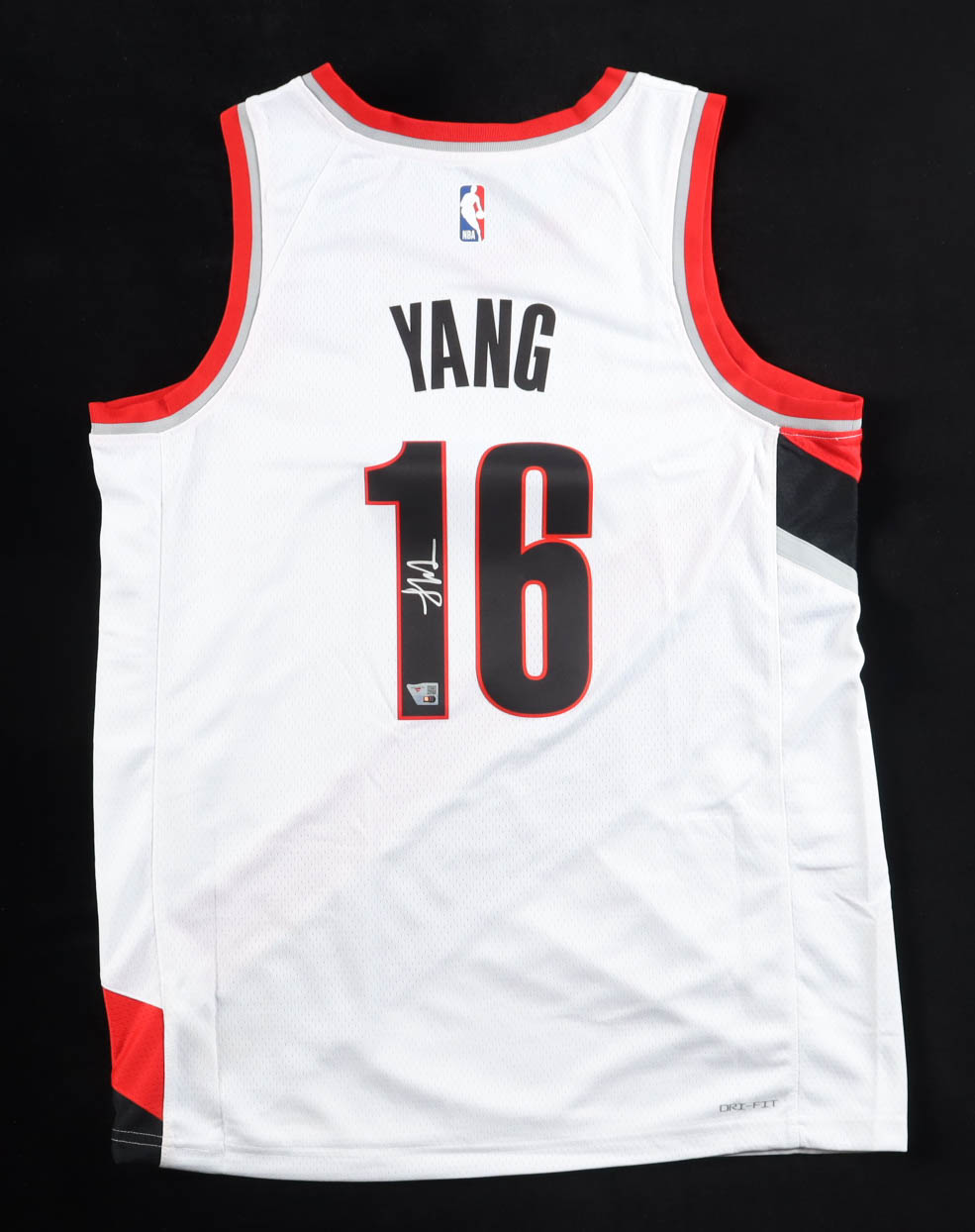 Nike authentic jersey with everything pressed on, size 48. Hand-signed by Yang Hansen (Portland Trail Blazers).