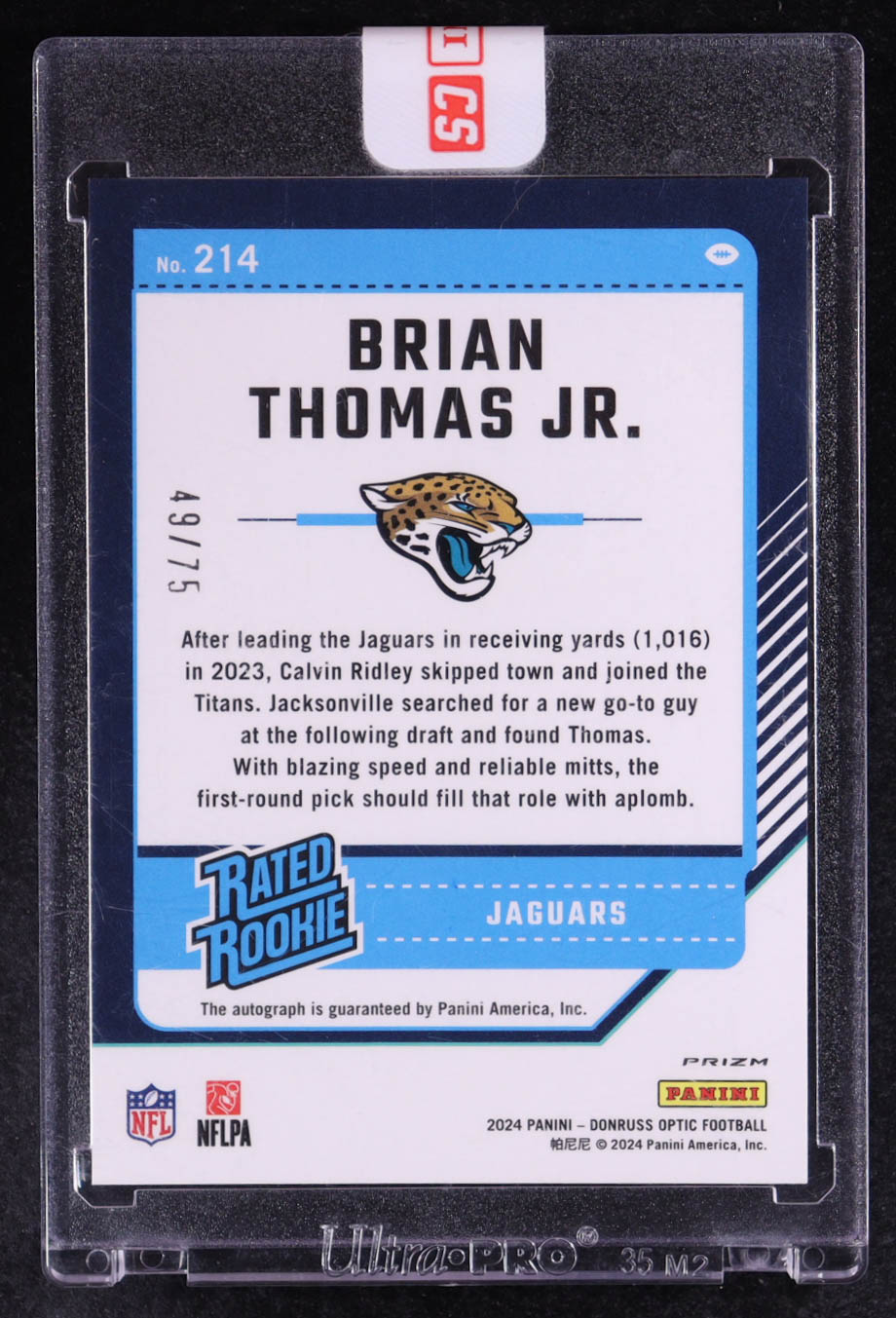Brian Thomas Jr. 2024 Donruss Optic Rated Rookies RPS Autographs Red #214 #49/75 RC