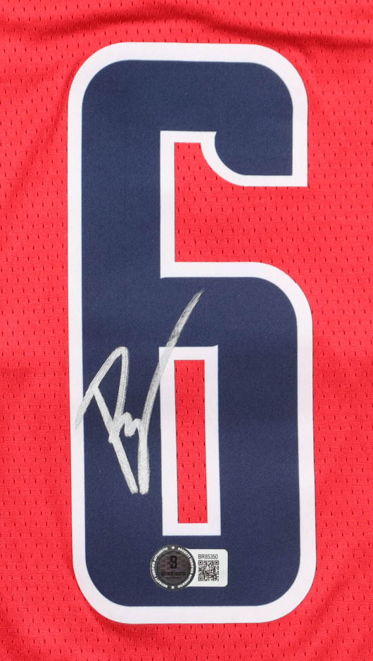 Nike jersey with everything pressed on, size 48. Hand-signed by Kristaps Porzingis (Washington Wizards).
