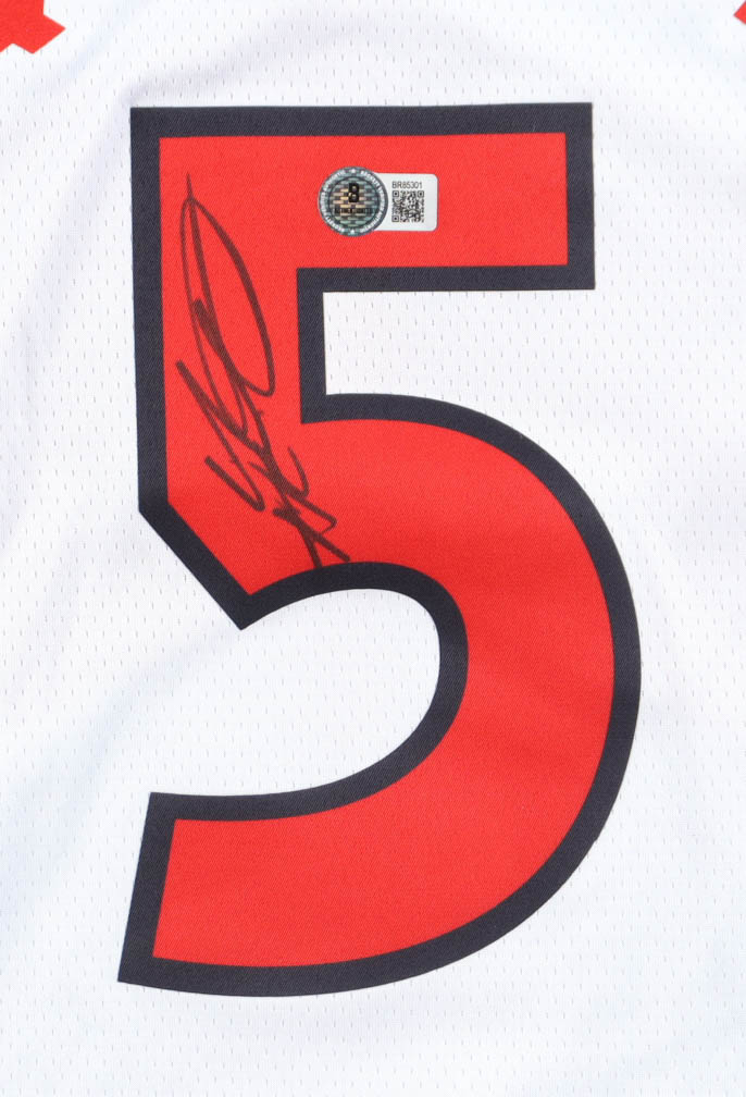Nike authentic jersey with everything pressed on, size 48. Hand-signed by Immanuel Quickley (Toronto Raptors).