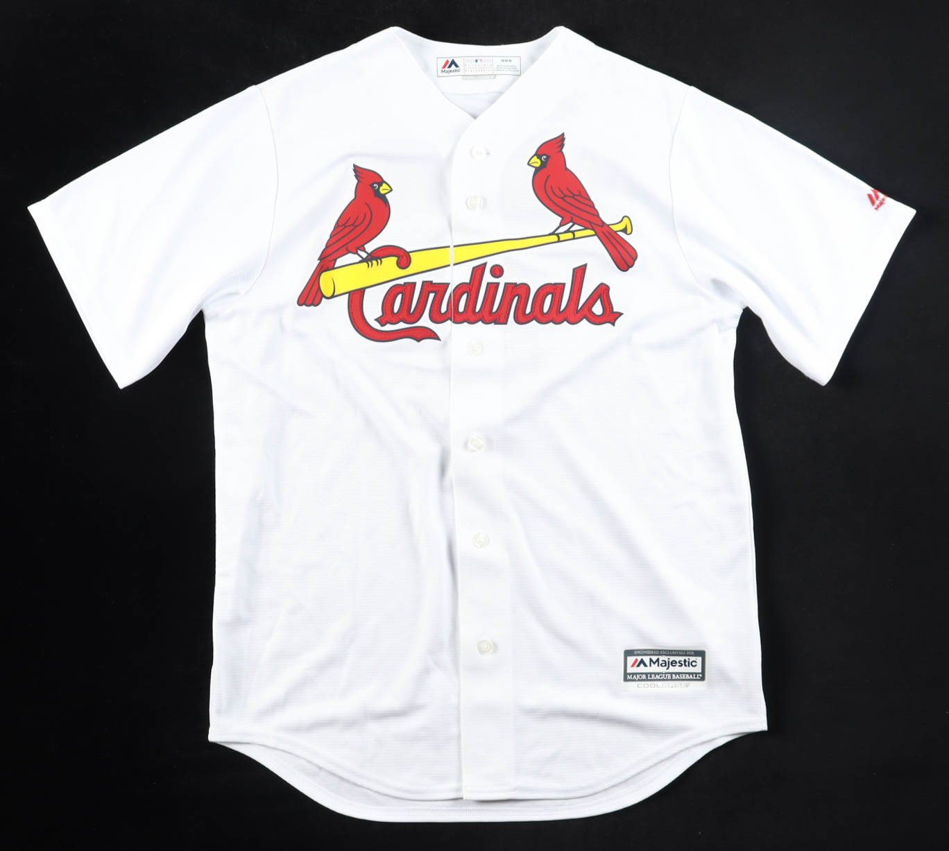 Majestic Cooperstown Collection jersey with everything sewn on, size M Hand-signed by Stan Musial (D. 2013, St. Louis Cardinals, HOF).