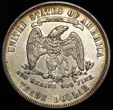 The United States trade dollar was a dollar coin minted by the United States Mint to compete with other large silver trade coins that were already popular in East Asia. The idea first came about in the 1860s, when the price of silver began to decline due to increased mining efforts in the western United States. A bill providing in part for the issuance of the trade dollar was eventually put before Congress, where it was approved and later signed into law as the Coinage Act of 1873. The act made trade dollars legal tender up to five dollars. A number of designs were considered for the trade dollar, and an obverse and reverse created by William Barber were selected.