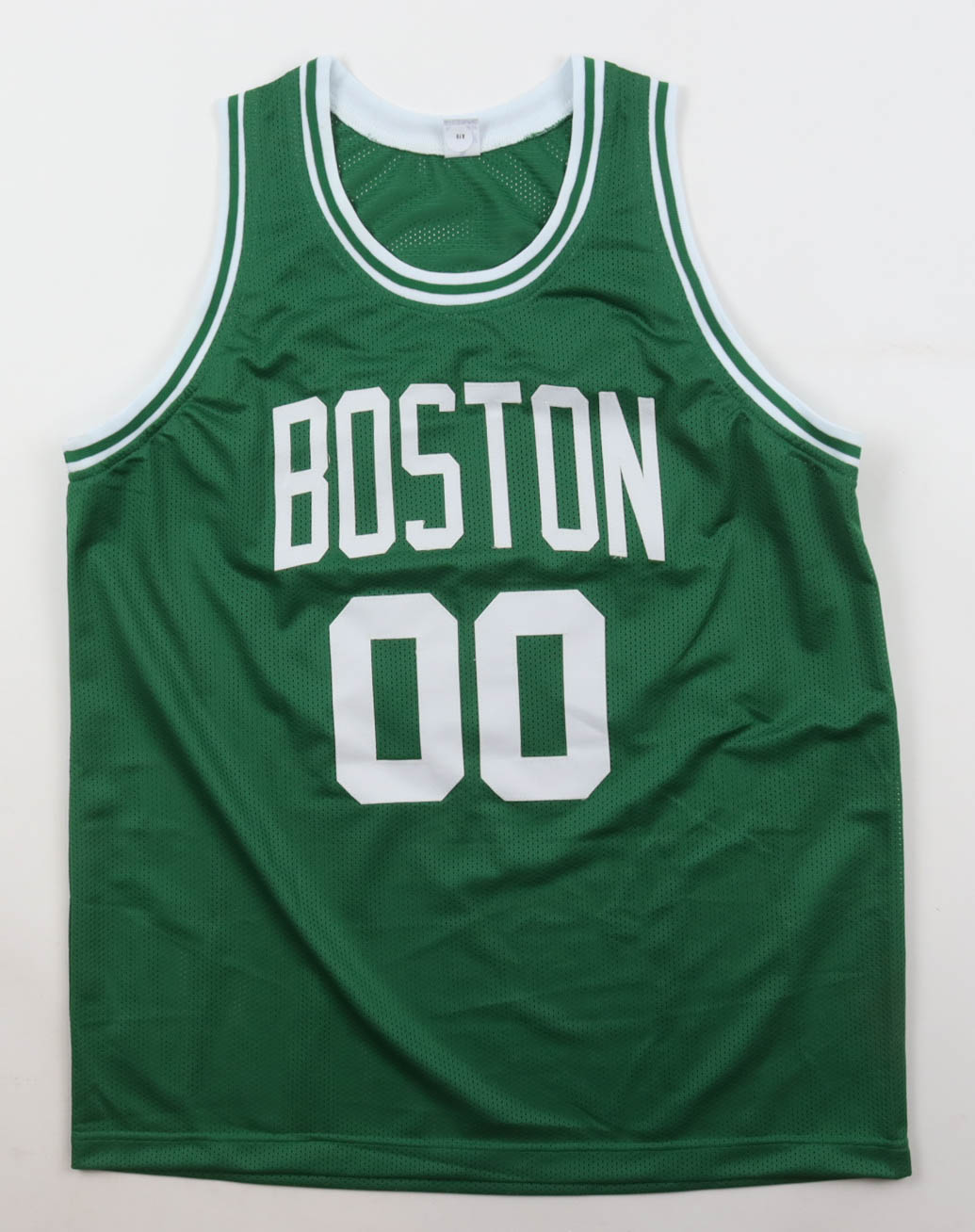 Custom jersey with everything sewn on, size XL. Hand-signed by Robert Parish (HOF).