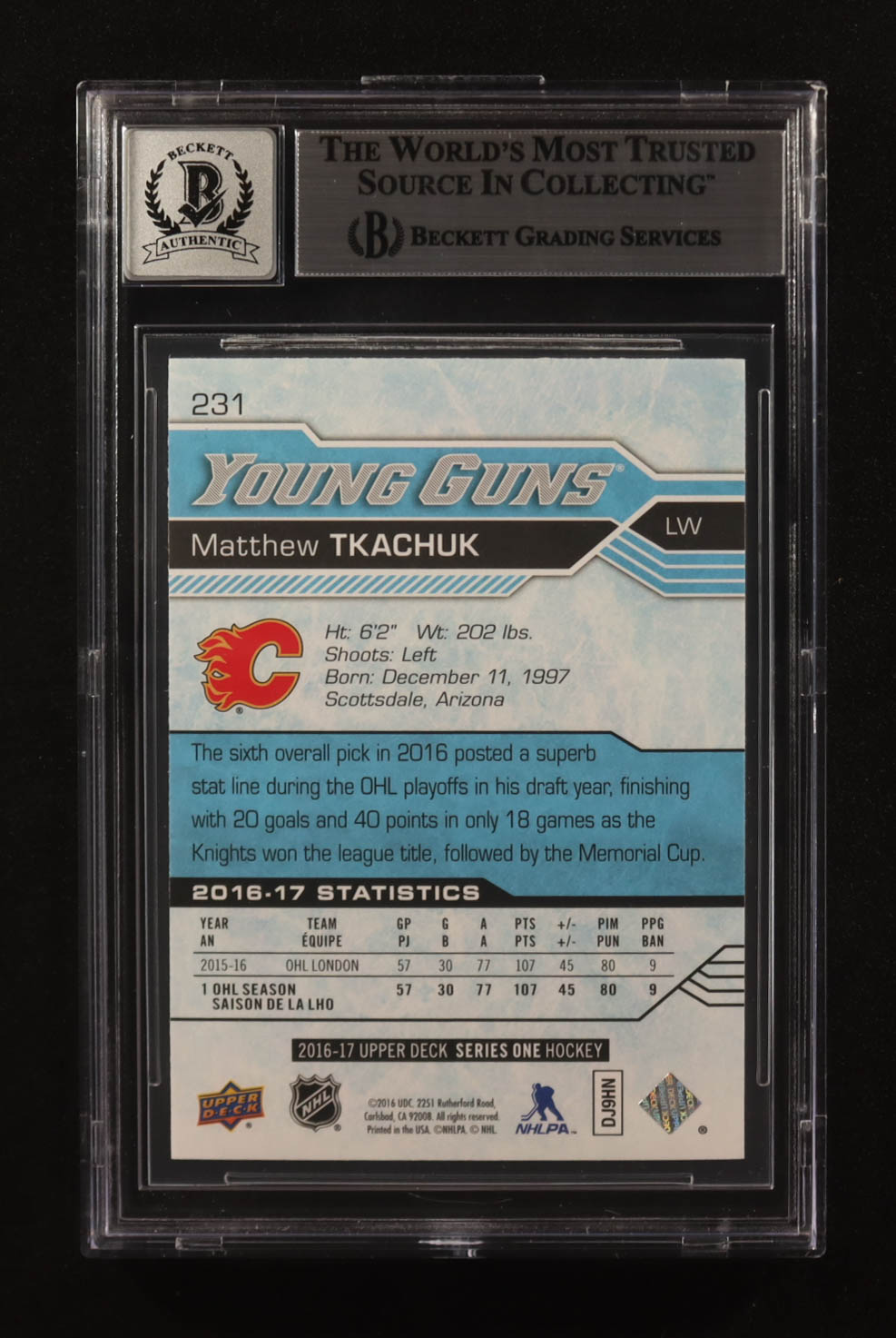 Matthew Tkachuk Signed 2016-17 Upper Deck Series One Young Guns #231 RC (BGS | Autograph Graded BGS 10)
