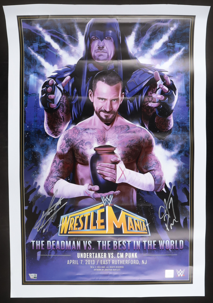 CM Punk & The Undertaker Signed 2013 WrestleMania 24x36 Poster (Fanatics)