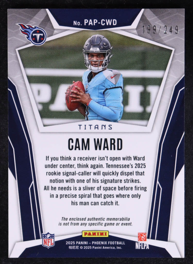 Cam Ward 2025 Panini Phoenix Pandora Patches Red #20 #199/249 RC
