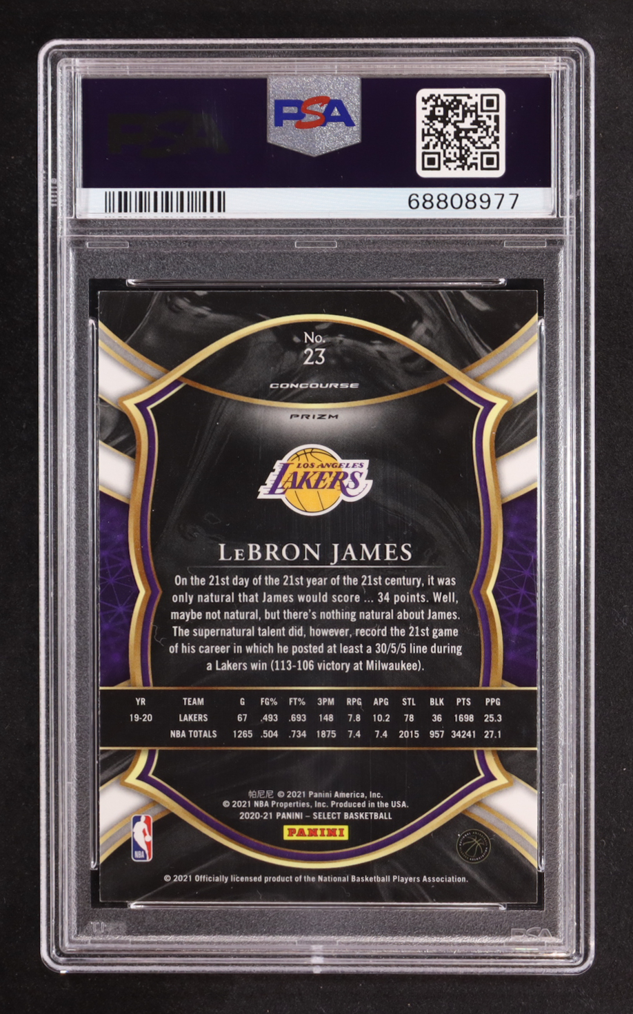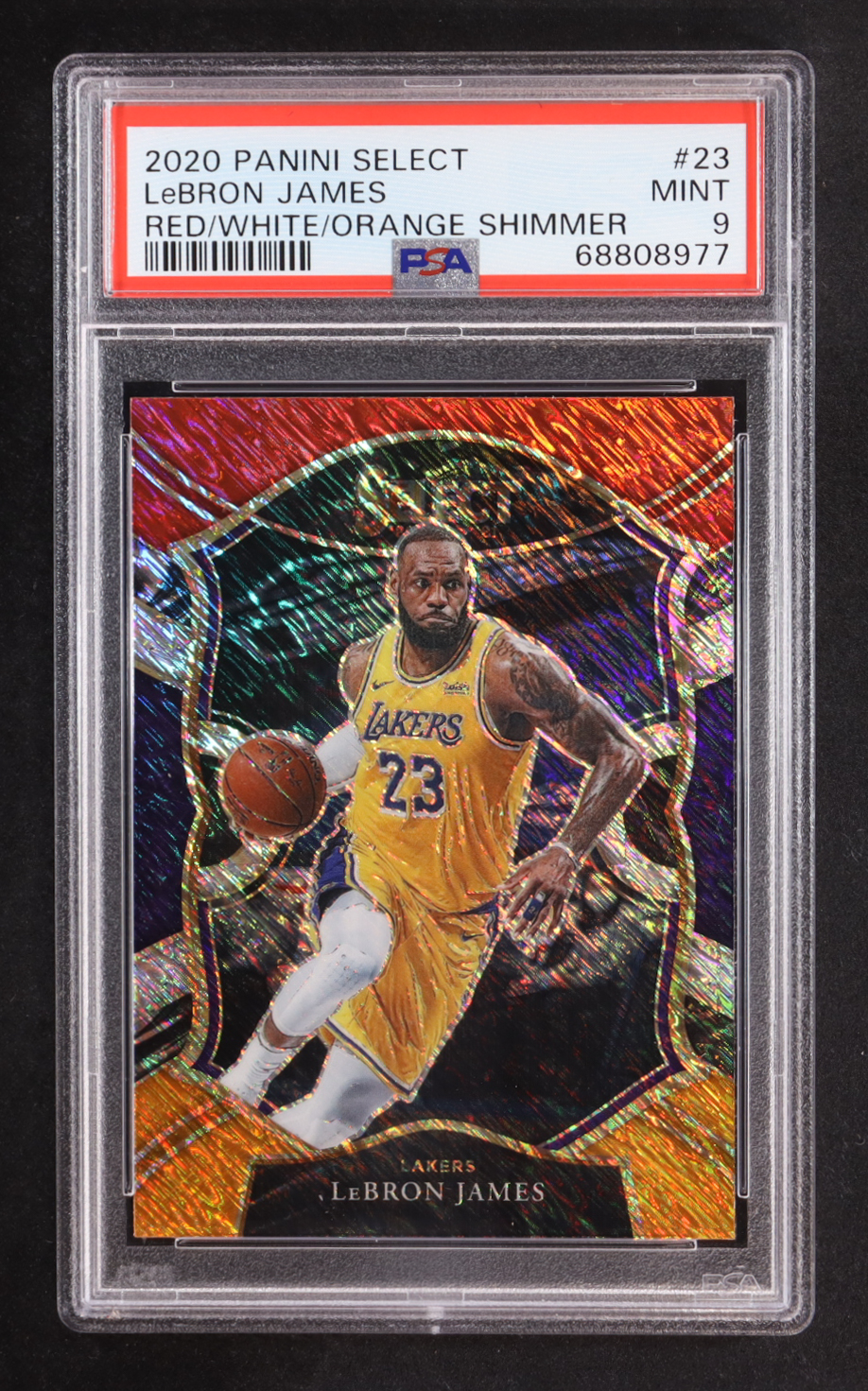 LeBron James 2020-21 Select Prizms Red White Orange Shimmer #23 (PSA 9)