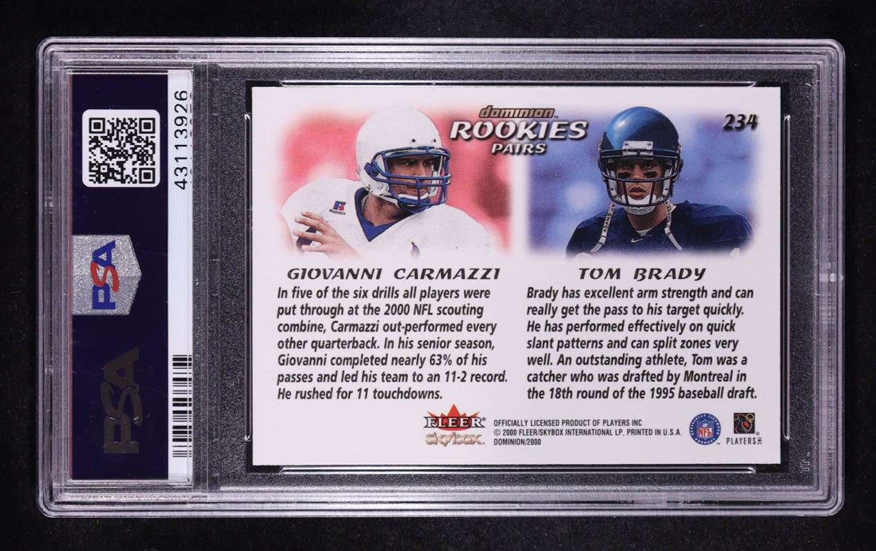 Tom Brady / Giovanni Carmazzi 2000 SkyBox Dominion #234 RC (PSA 10)