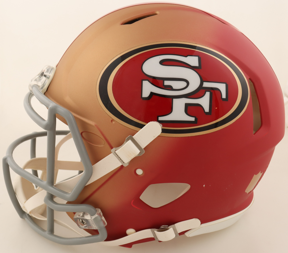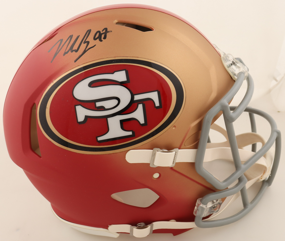 Riddell San Fransisco 49ers Full-Size Authentic On-field Custom Speed helmet. Hand-signed by Nick Bosa.