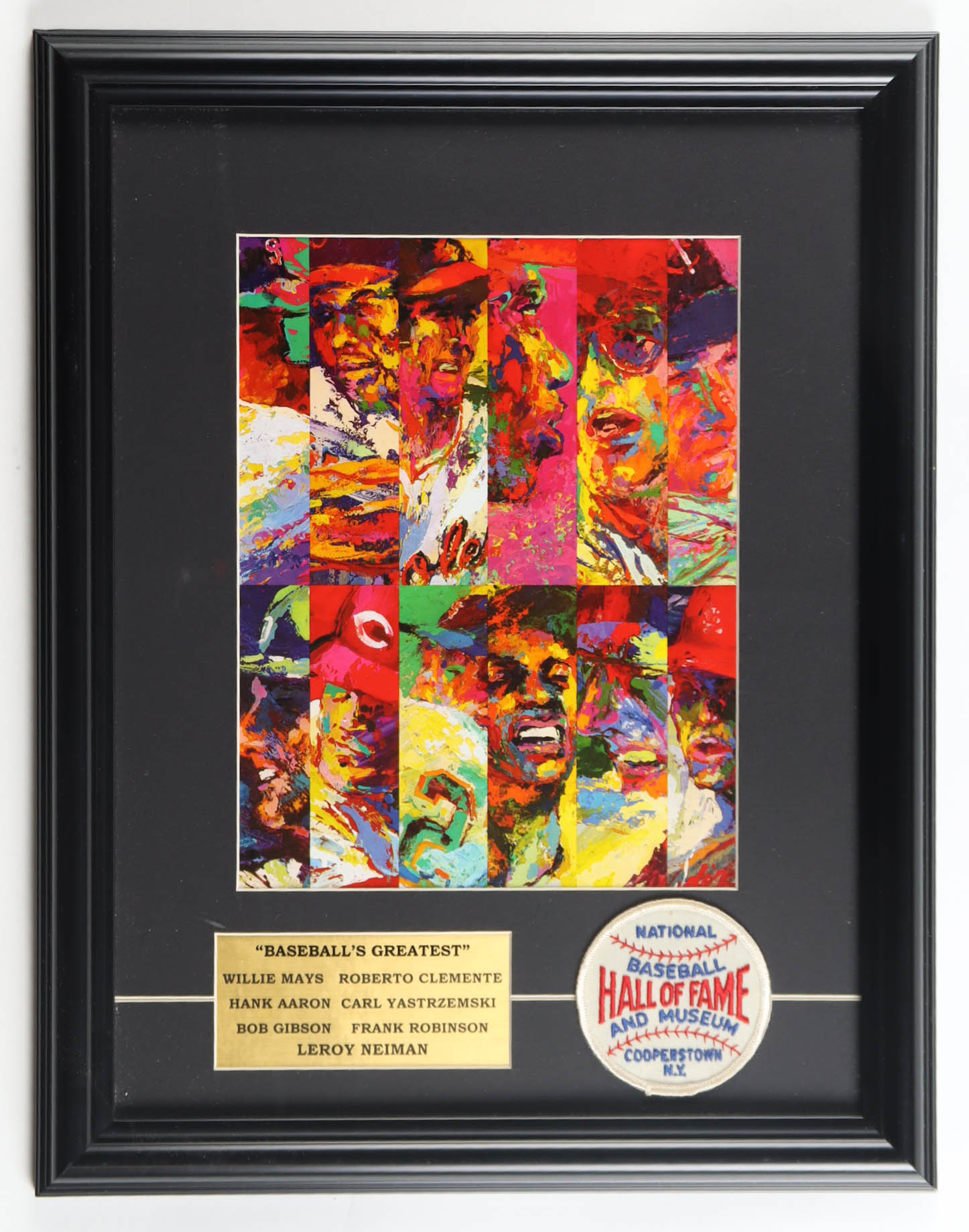Custom framed display measures approximately 14" x 18" in size and features an art print from Leroy Neiman (D. 2012). Display also features a name plaque as well as an MLB Hall of Fame patch. Please note that the item is unsigned.