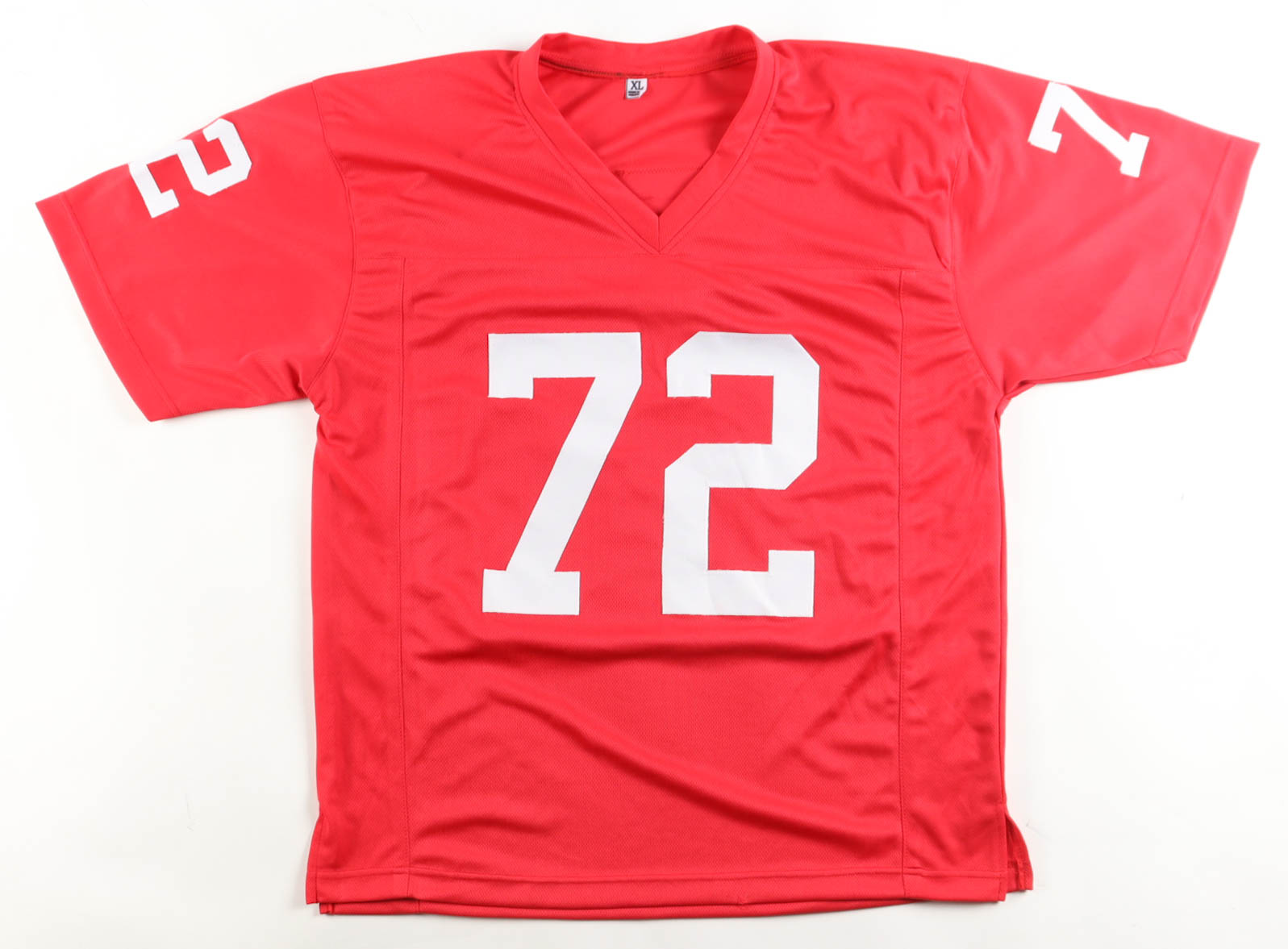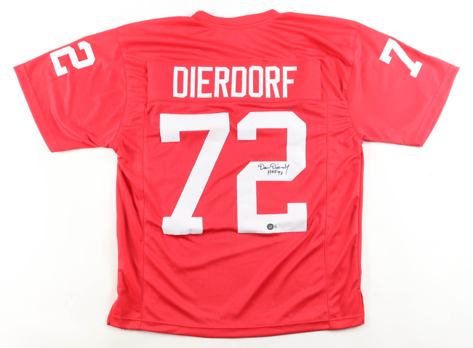 Custom jersey with everything sewn on, size XL. Hand-signed and inscribed by Dan Dierdorf (HOF).