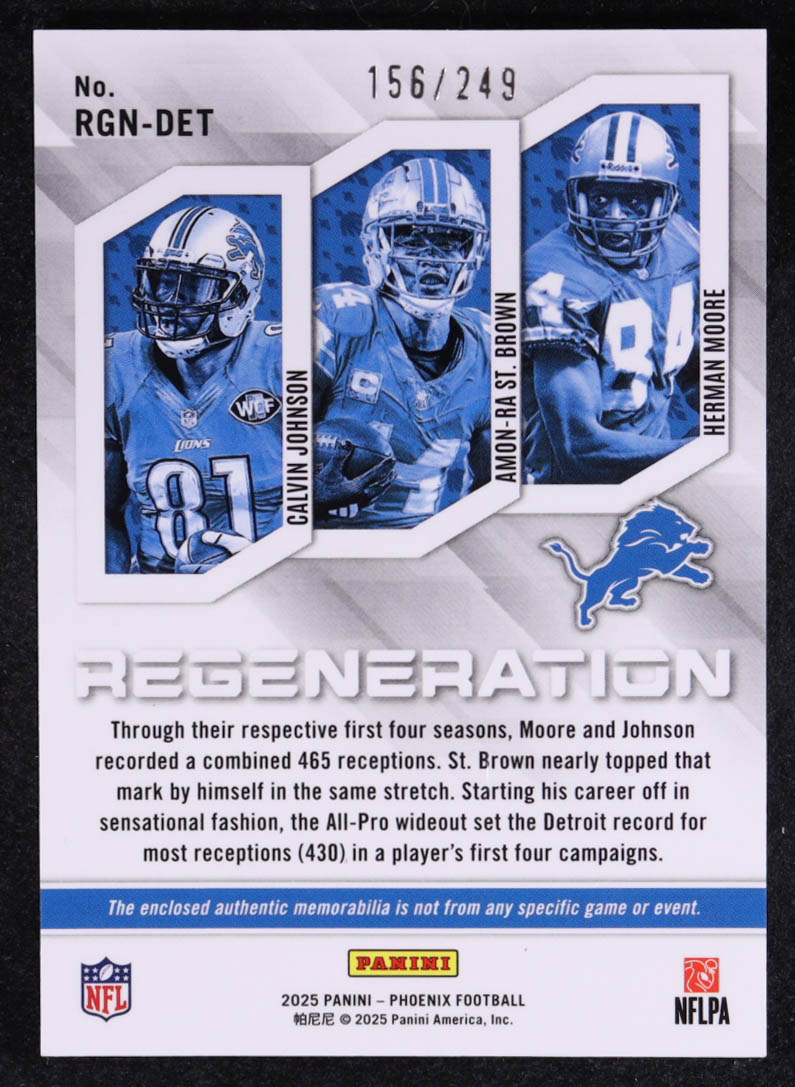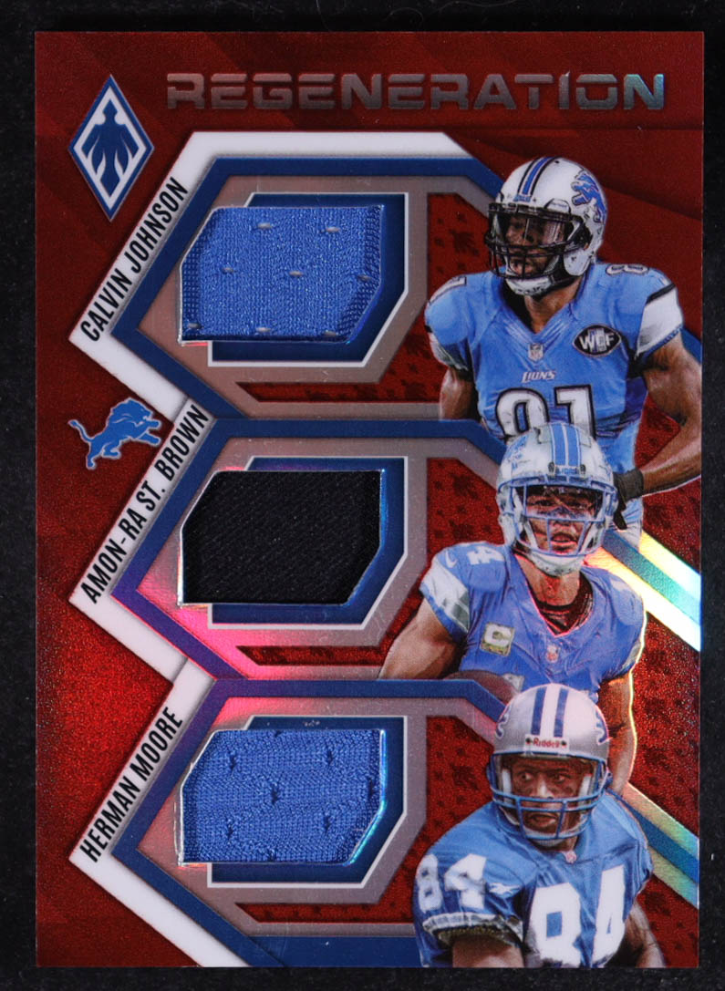 Calvin Johnson / Amon-Ra St. Brown / Herman Moore 2025 Panini Phoenix Regeneration Jerseys Red #3 #156/249