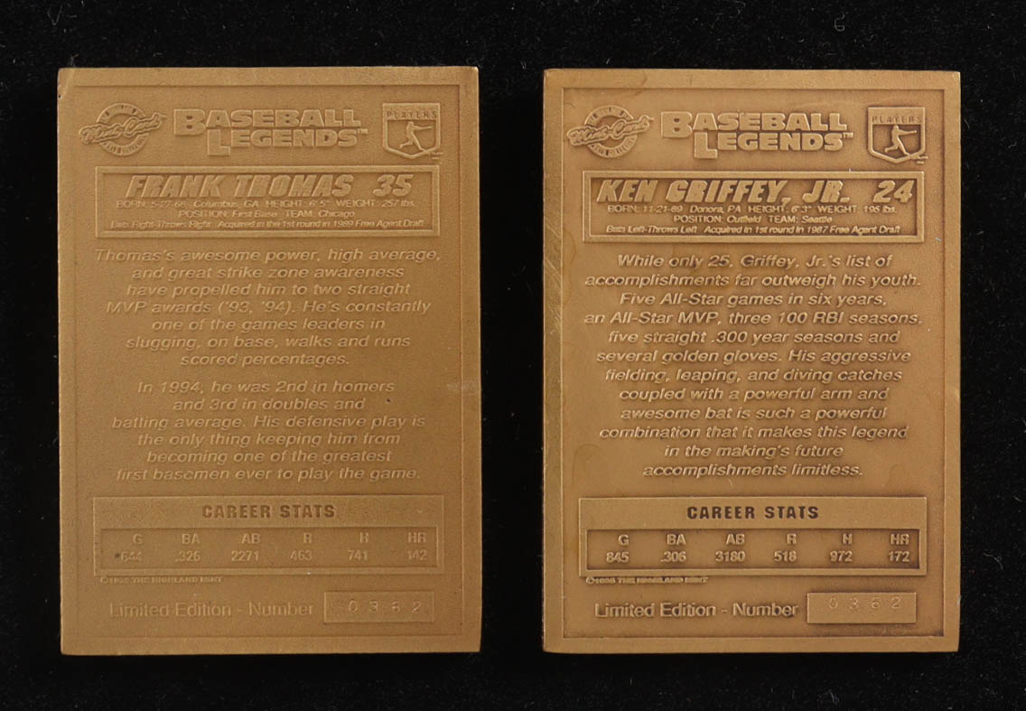 Frank Thomas & Ken Griffey Jr. LE 1995 Baseball Legends The Highland Mint Set of (2) Bronze Mint Cards