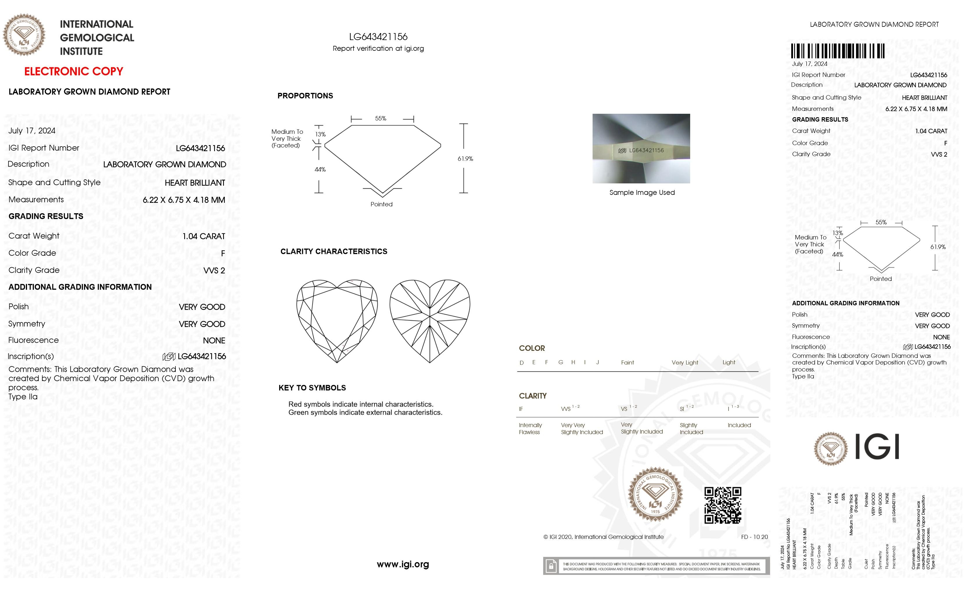 This piece includes paperwork from the International Gemological Institute (IGI).